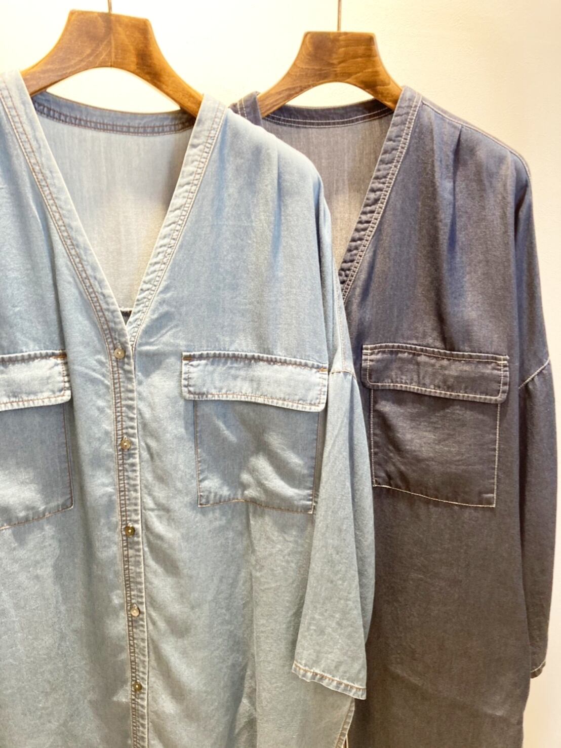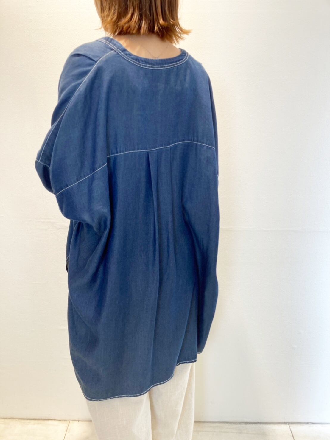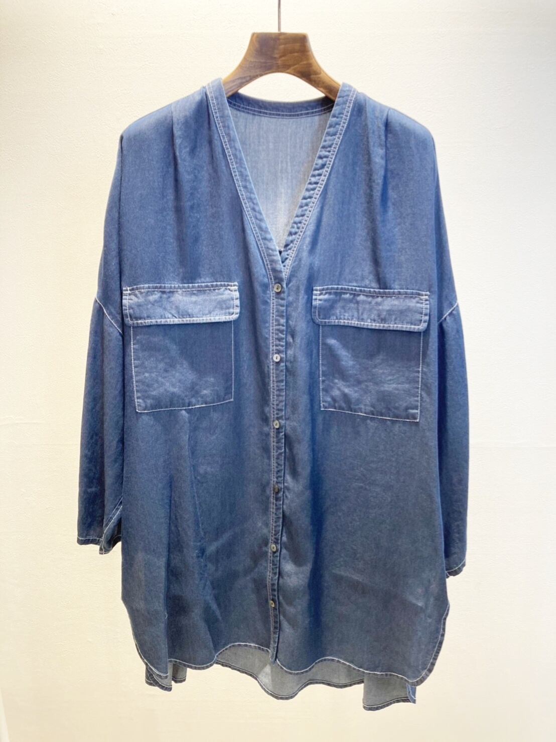 1枚でチュニックとしてもボタンを開けて羽織としても着ていただける着回し力◎なトロサラデニムシャツです。