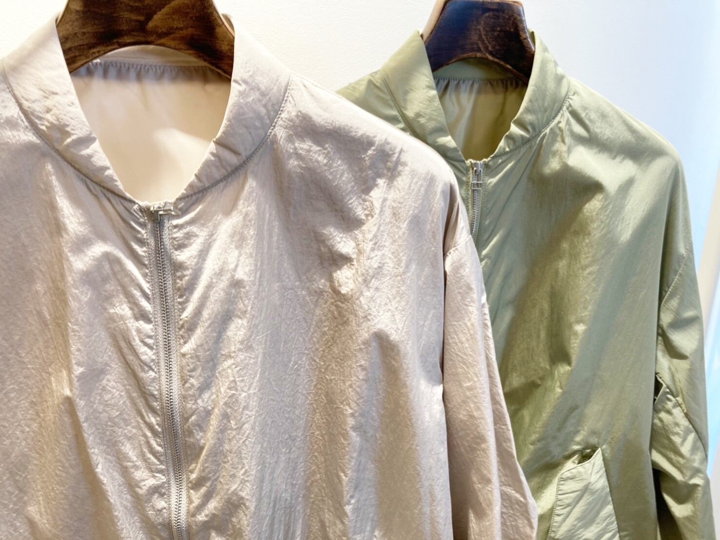 ほんのり光沢感のあるシャカシャカブルゾンは軽くてコンパクトにもなるこれからの羽織におすすめなデザインブルゾン!
