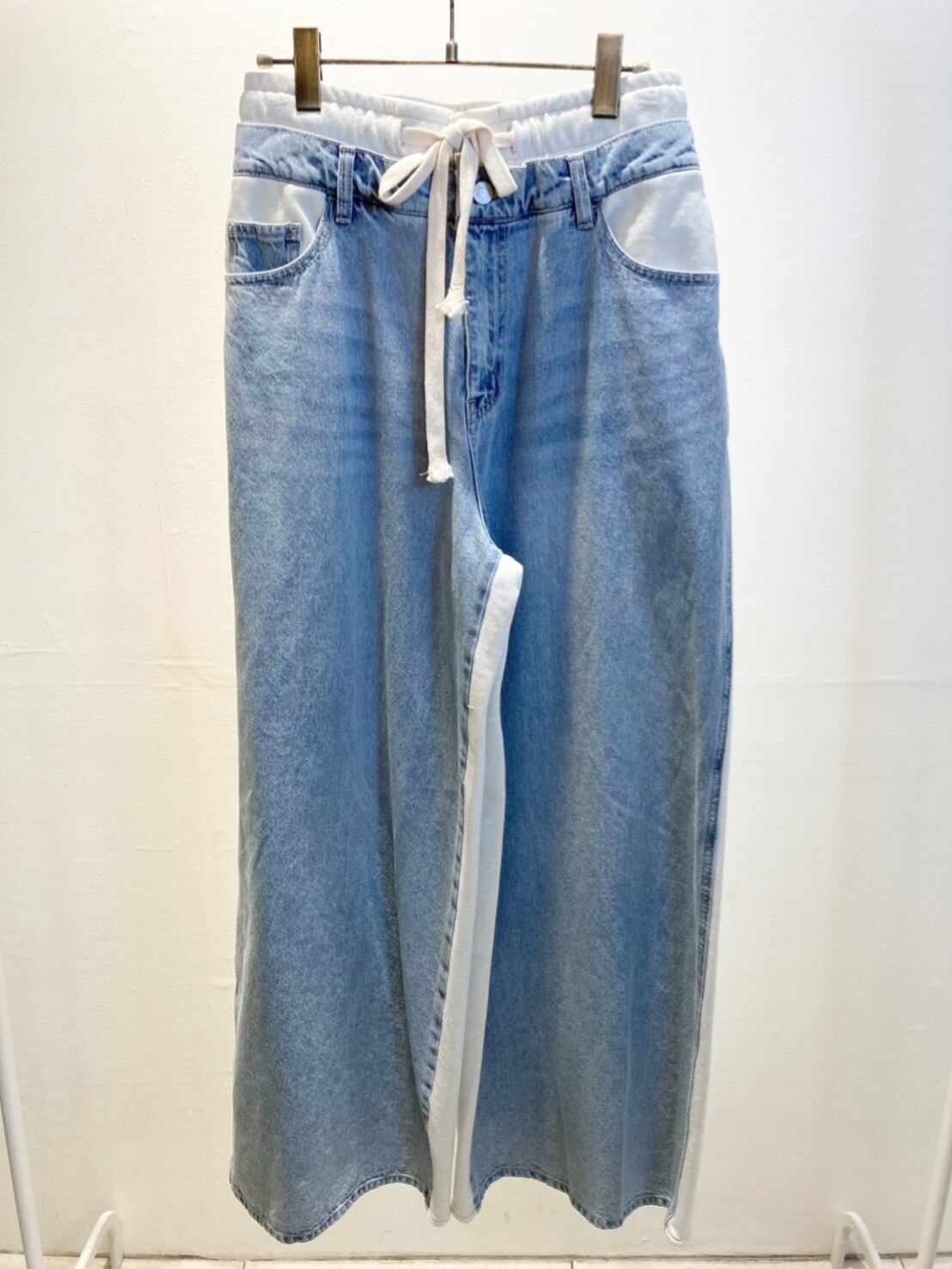デニムと裏毛の異素材切替ワイドパンツご新入荷!