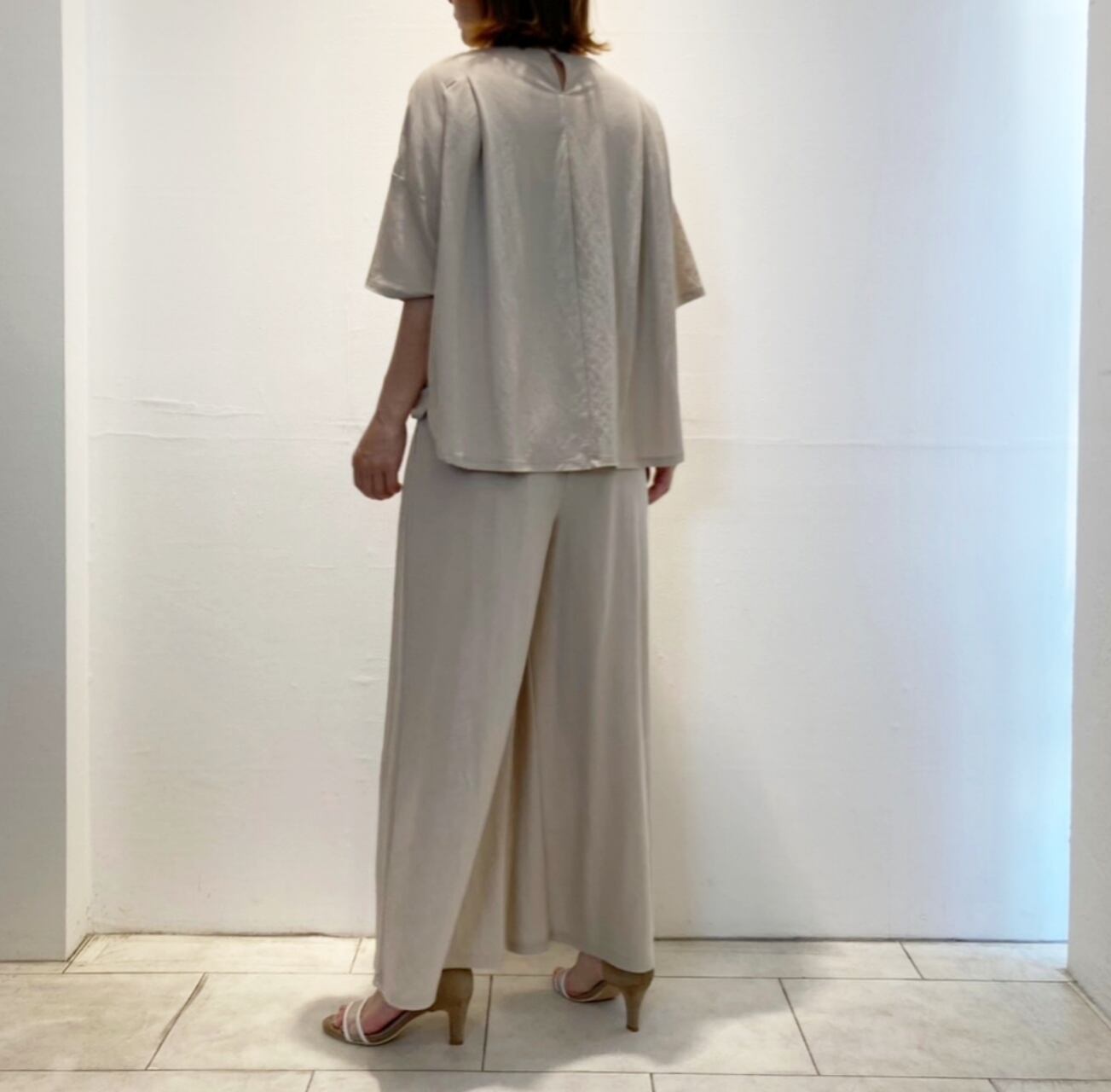 安心感ある袖丈とセットアップにもなるボトムがあるので合わせてご覧下さい。