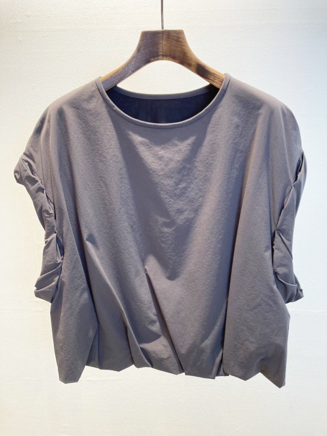 ねじったようなデザイン袖がアクセントになったシャリ感のあるお素材のデザイントップスが新入荷!