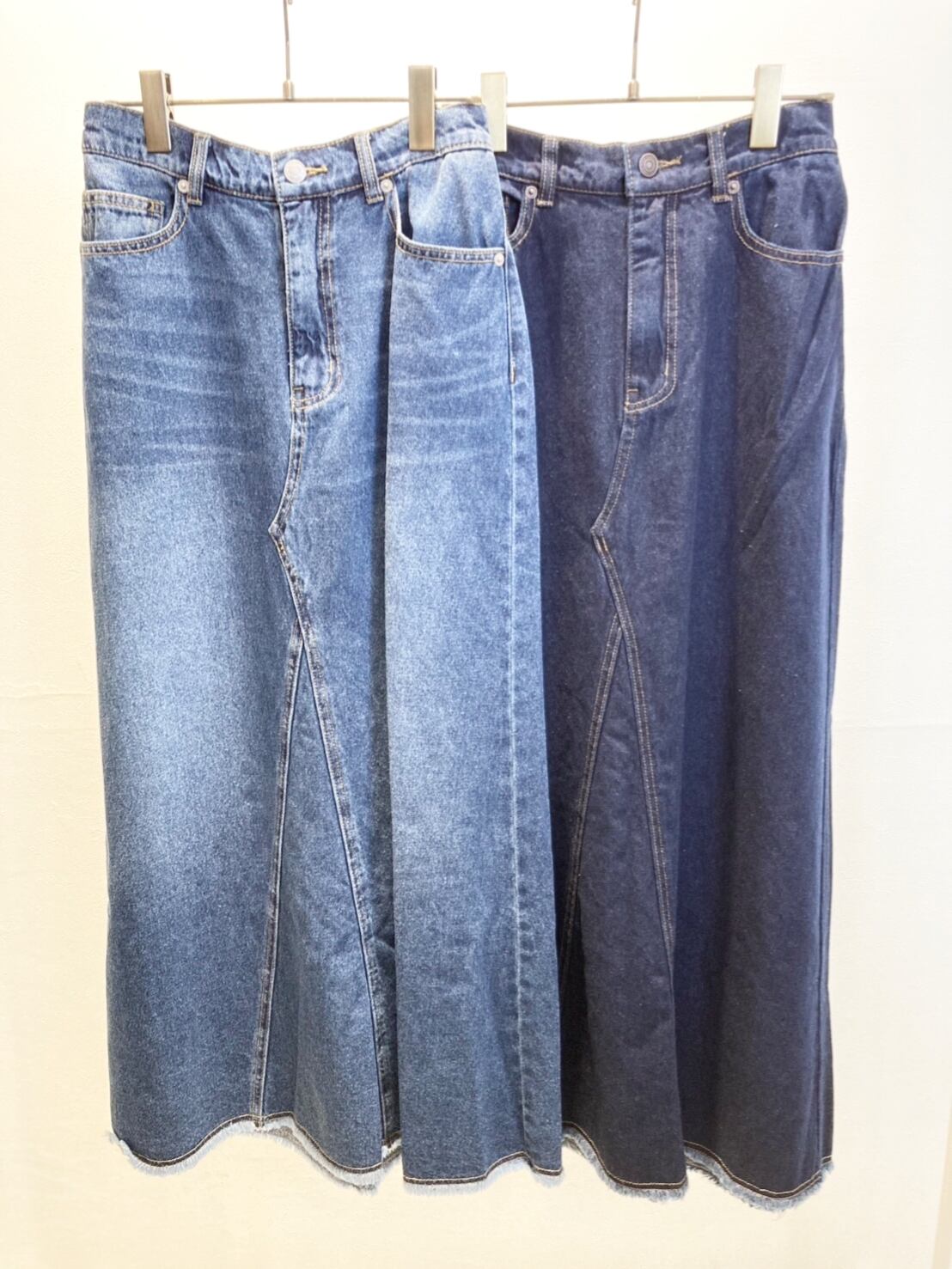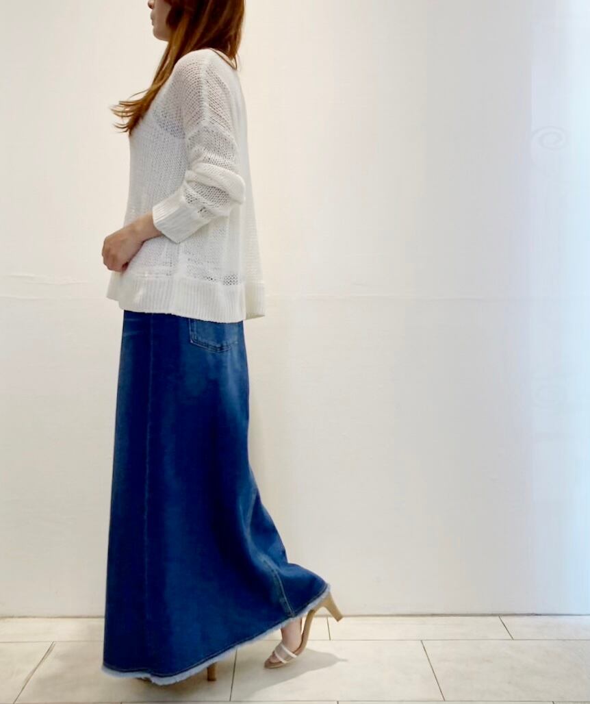 これからの季節にも涼しく履いて頂ける麻混Aラインデニムスカートが新入荷!