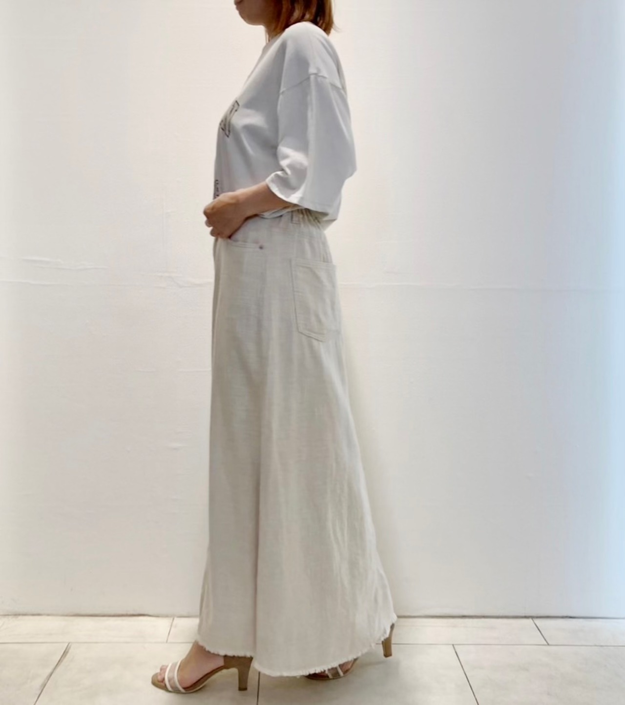 これからの季節涼しく履ける麻混Aラインスカート!