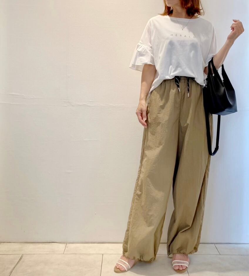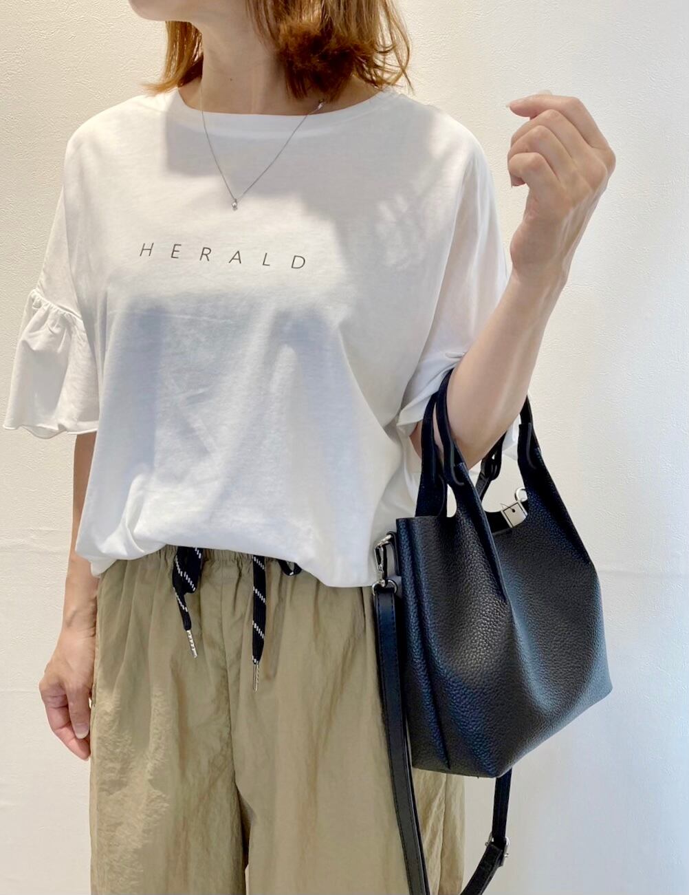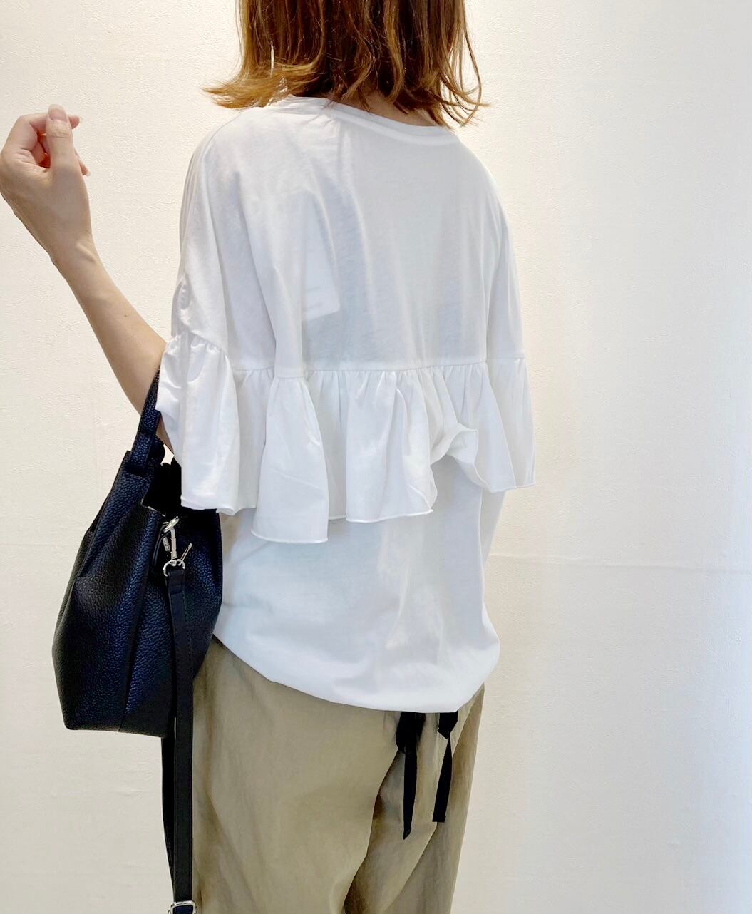 フリルデザインとリボンギャザーデザインがアクセントになった大人可愛いデザインTシャツです。