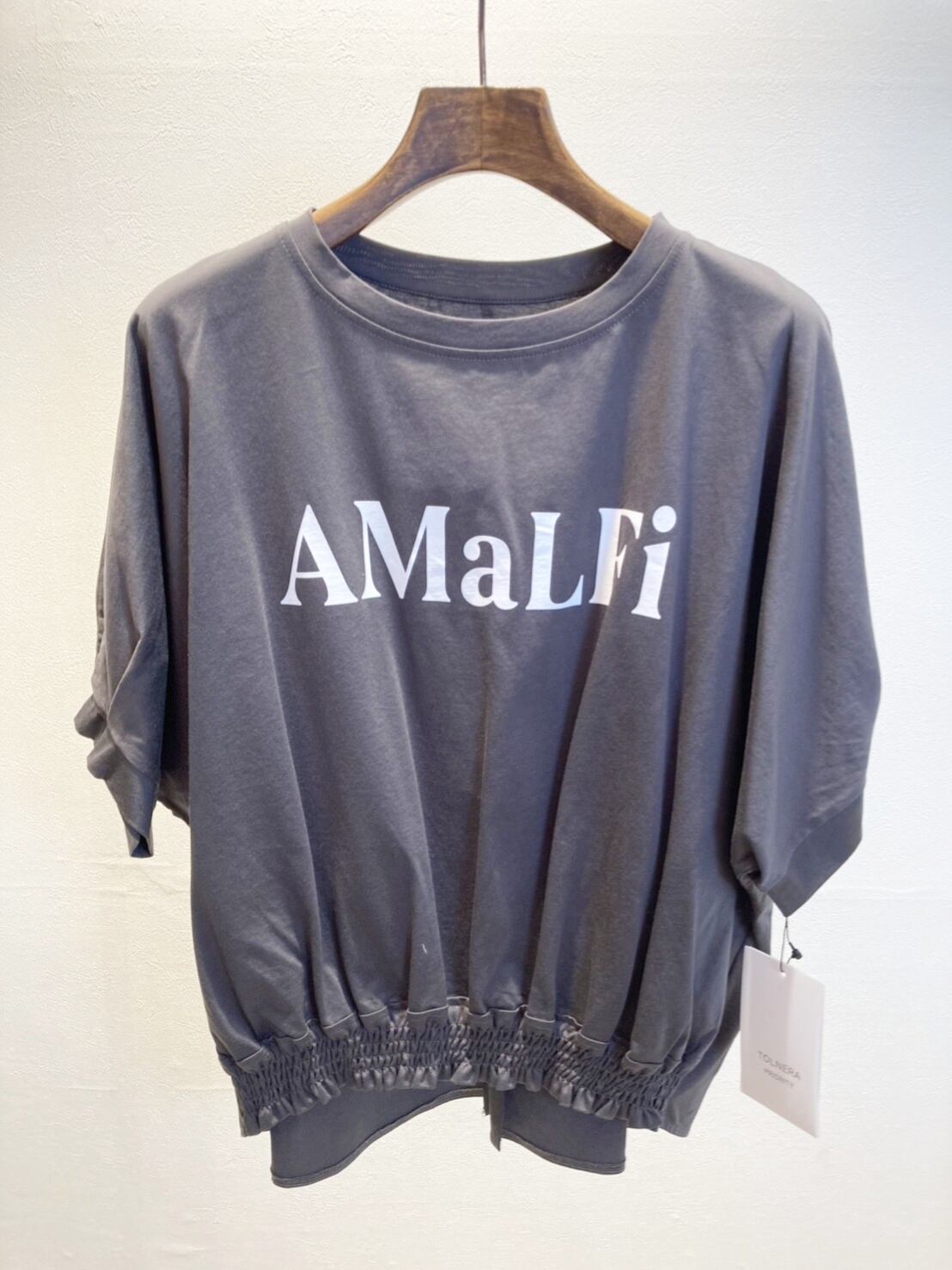 【NEW】TOLNERA フロントギャザーデザインロゴTシャツ