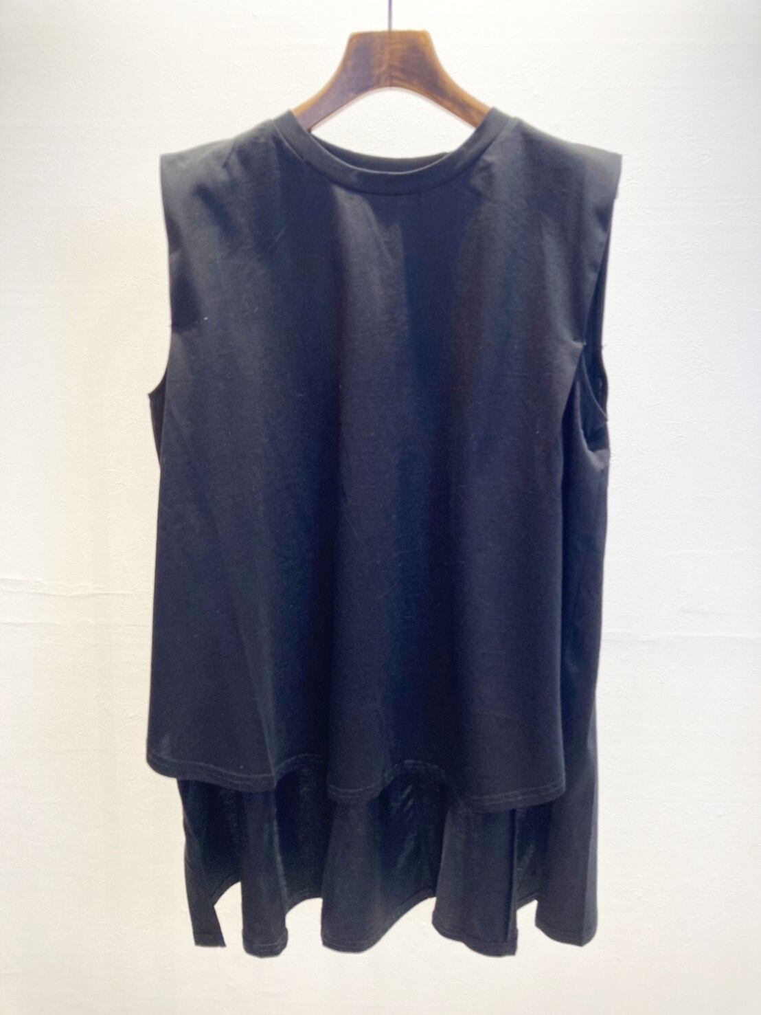 カット素材の後ろ長めのフレアチュニックは暑くなるこれからにも涼しく着て頂ける1着です。