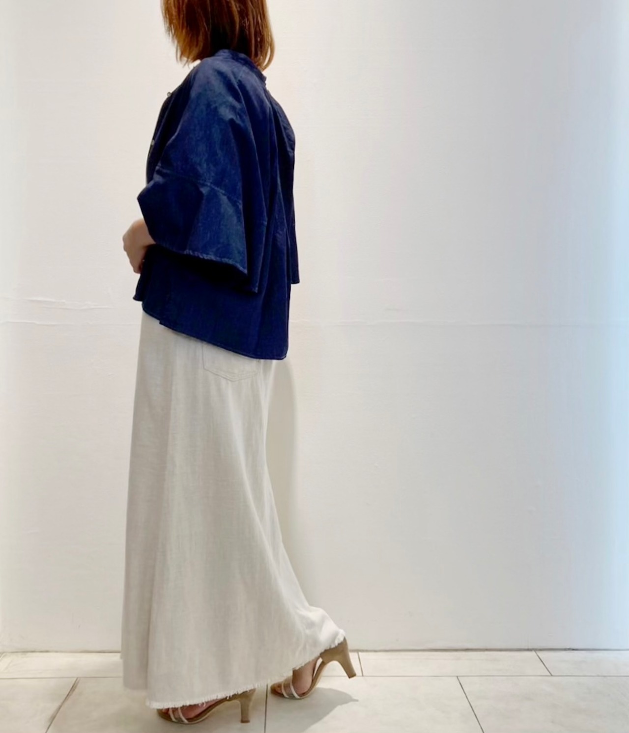 デザイン性ある大人カジュアルな袖フレアシデニムシャツ!