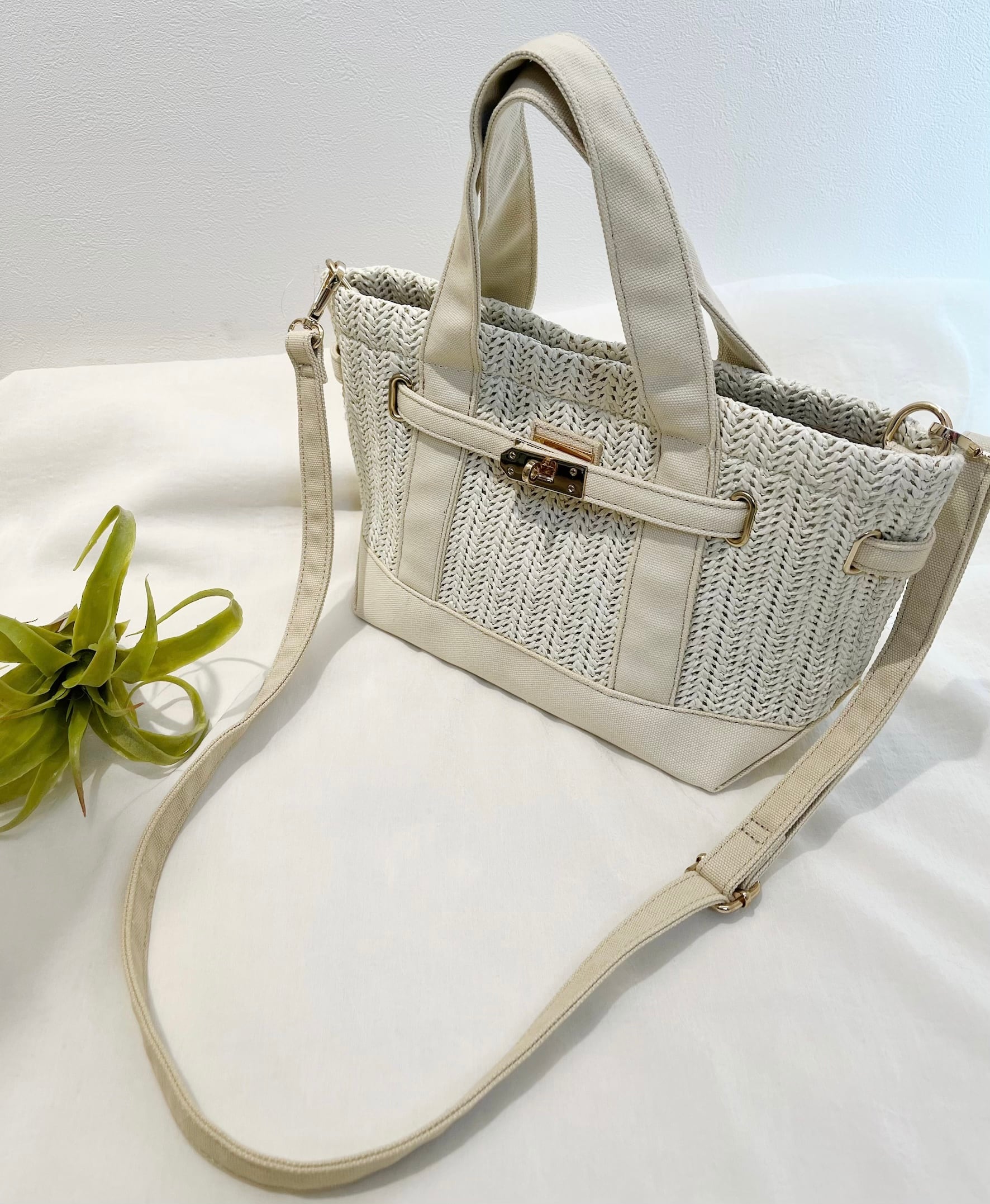 ゴールド金具がアクセントになった大人カジュアルなカゴバッグです。