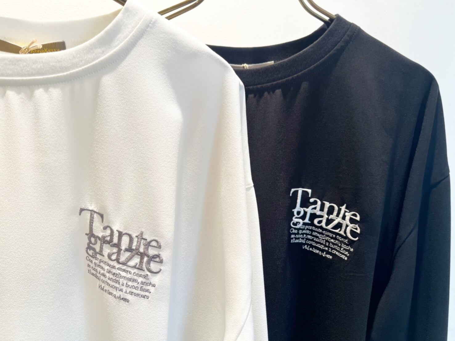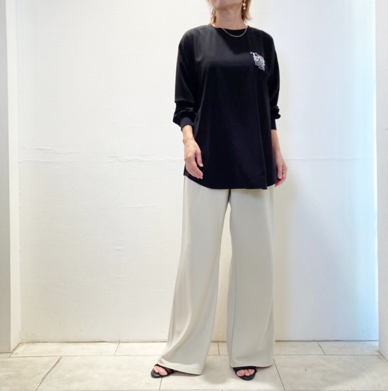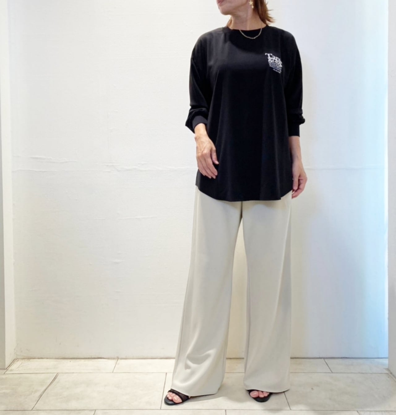 アムンゼン生地で作られたトロンと落ち感のある綺麗目素材のロゴトップス。