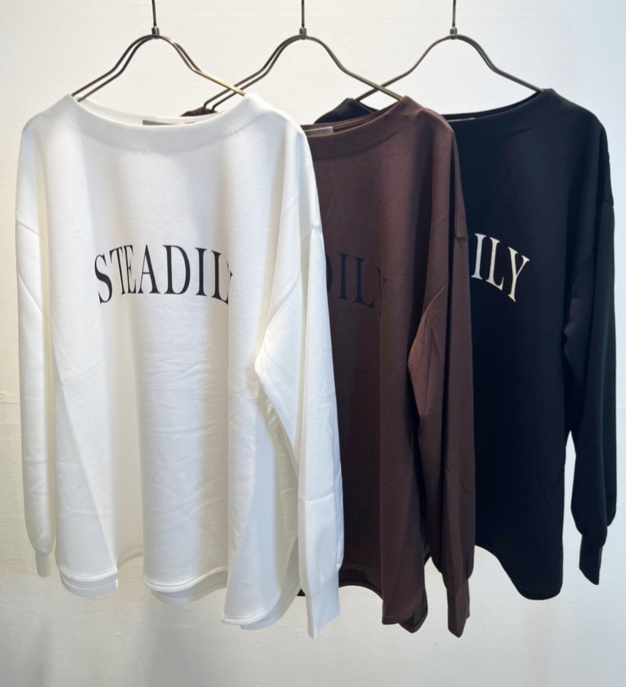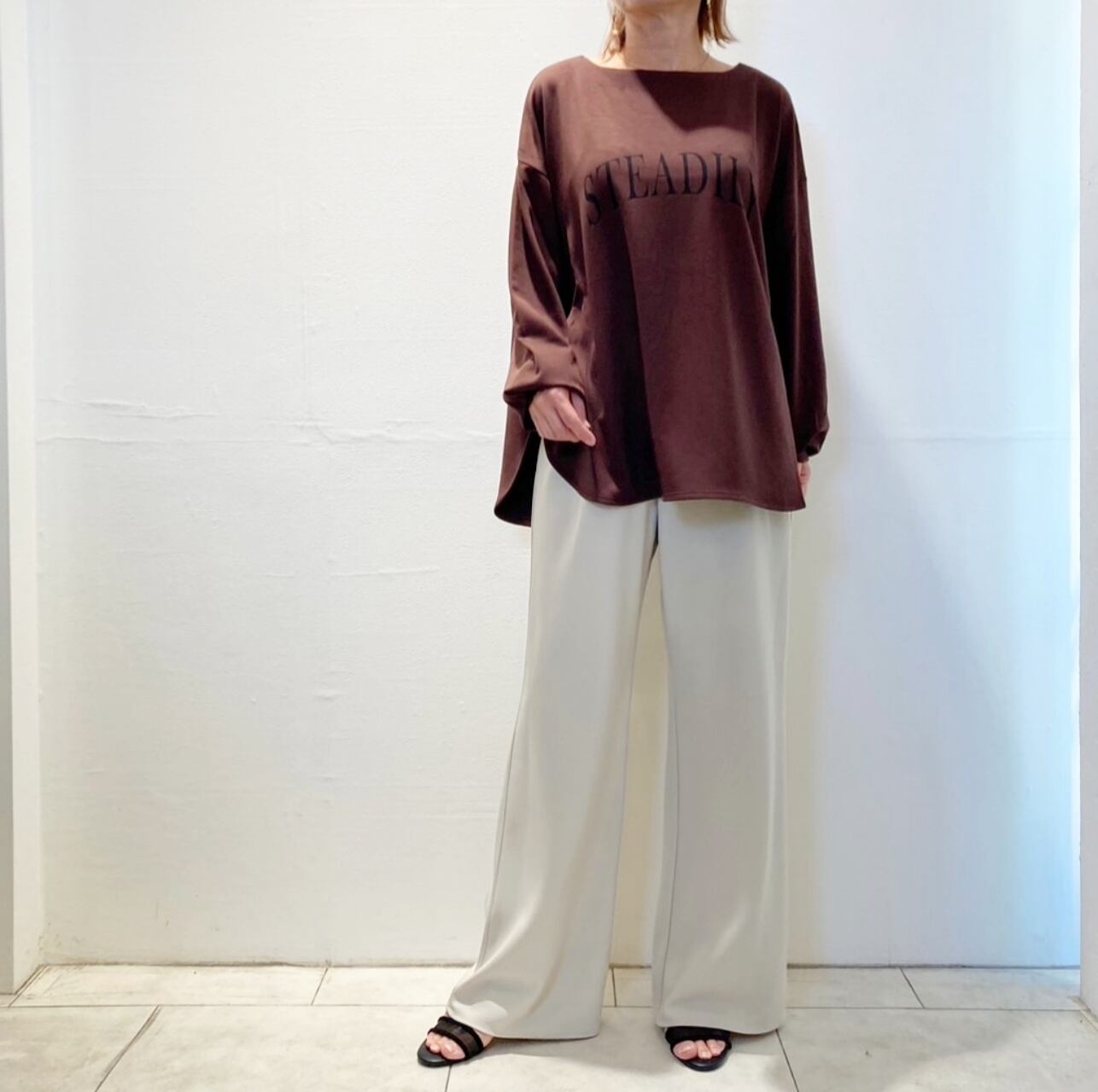 トロンと落ち感のあるソフトボンディングロゴトップスは大人カジュアルスタイルにピッタリな1着です。