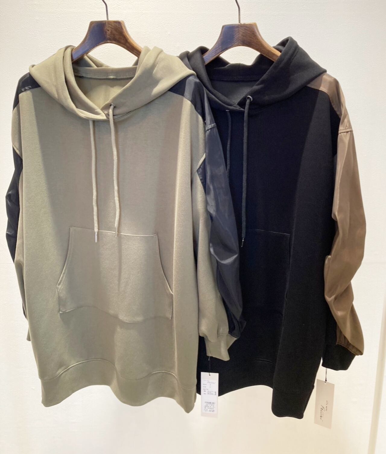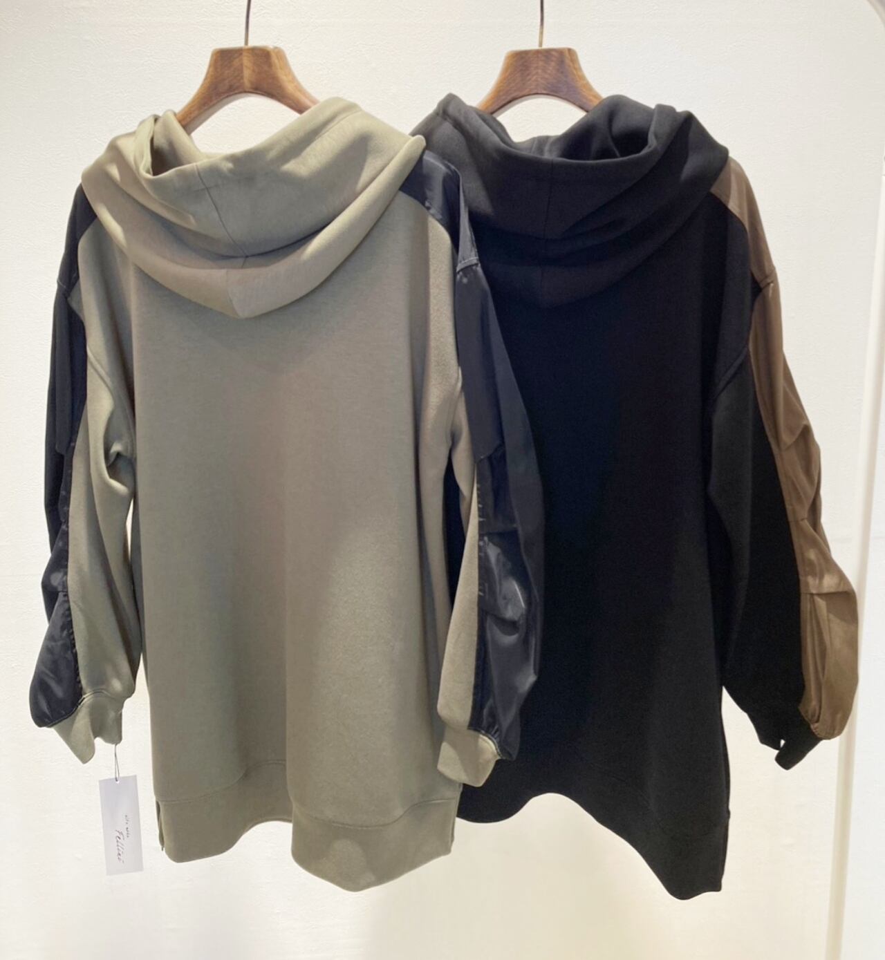 【NEW】Fellini サイドジップ異素材切替パーカートップス