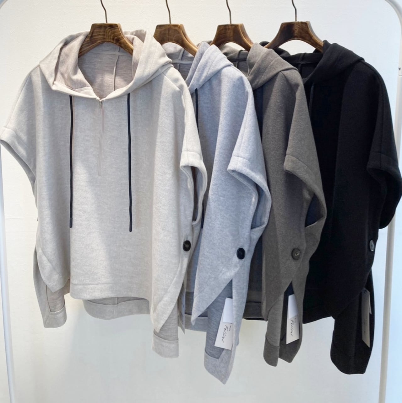 今季マストなレイヤードスタイルにもピッタリなポンチョ風パーカートップスが新入荷!
