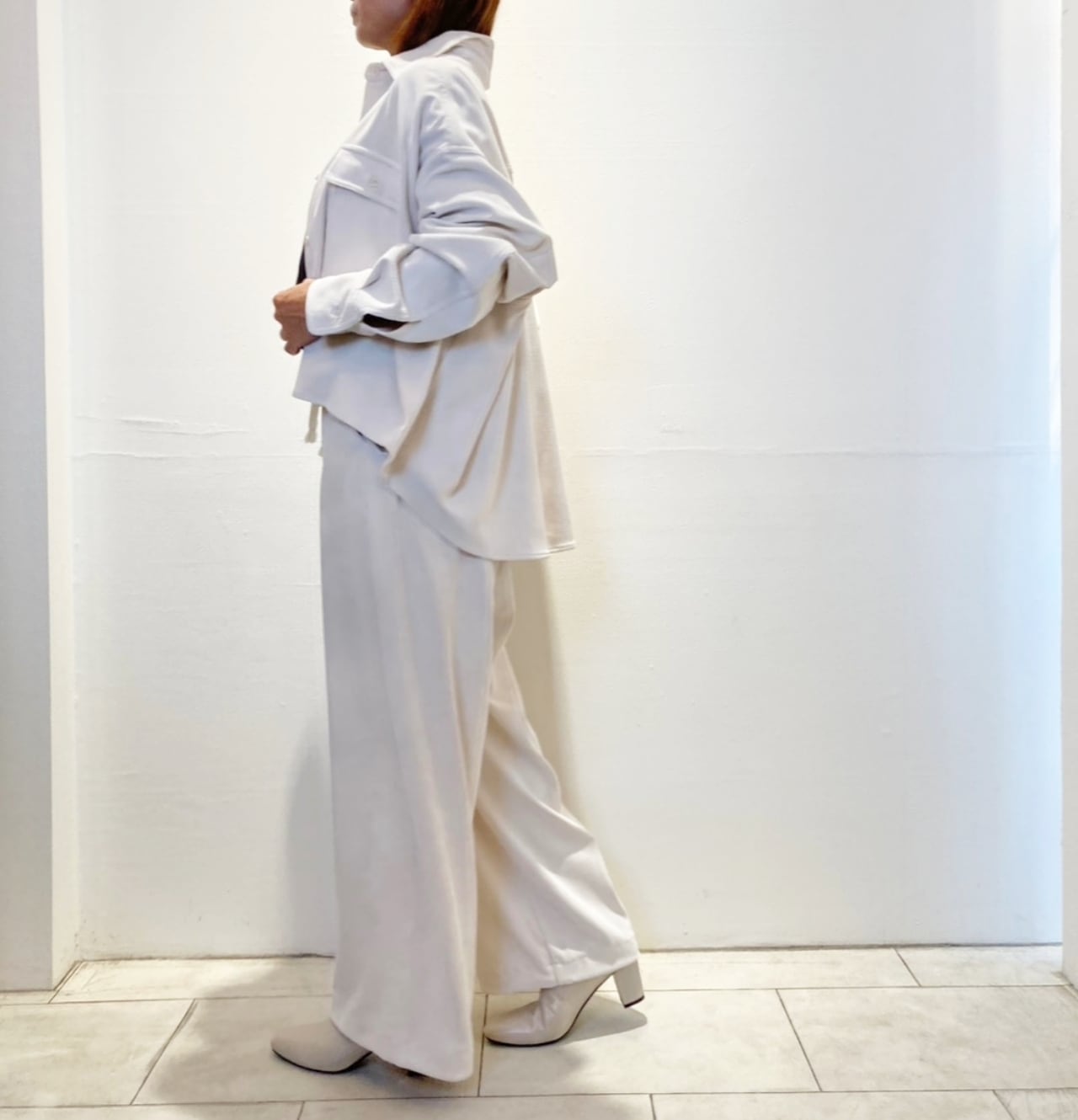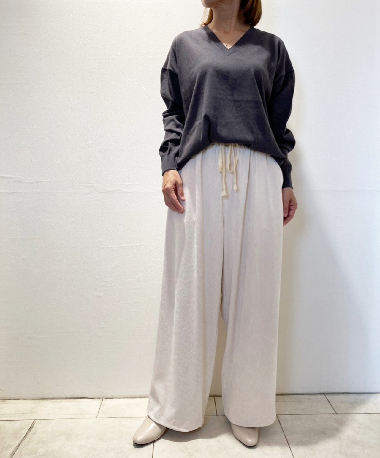 トロンと落ち感のある生地感でスッキリとしたシルエットに見せてくれる大人綺麗な1着です。