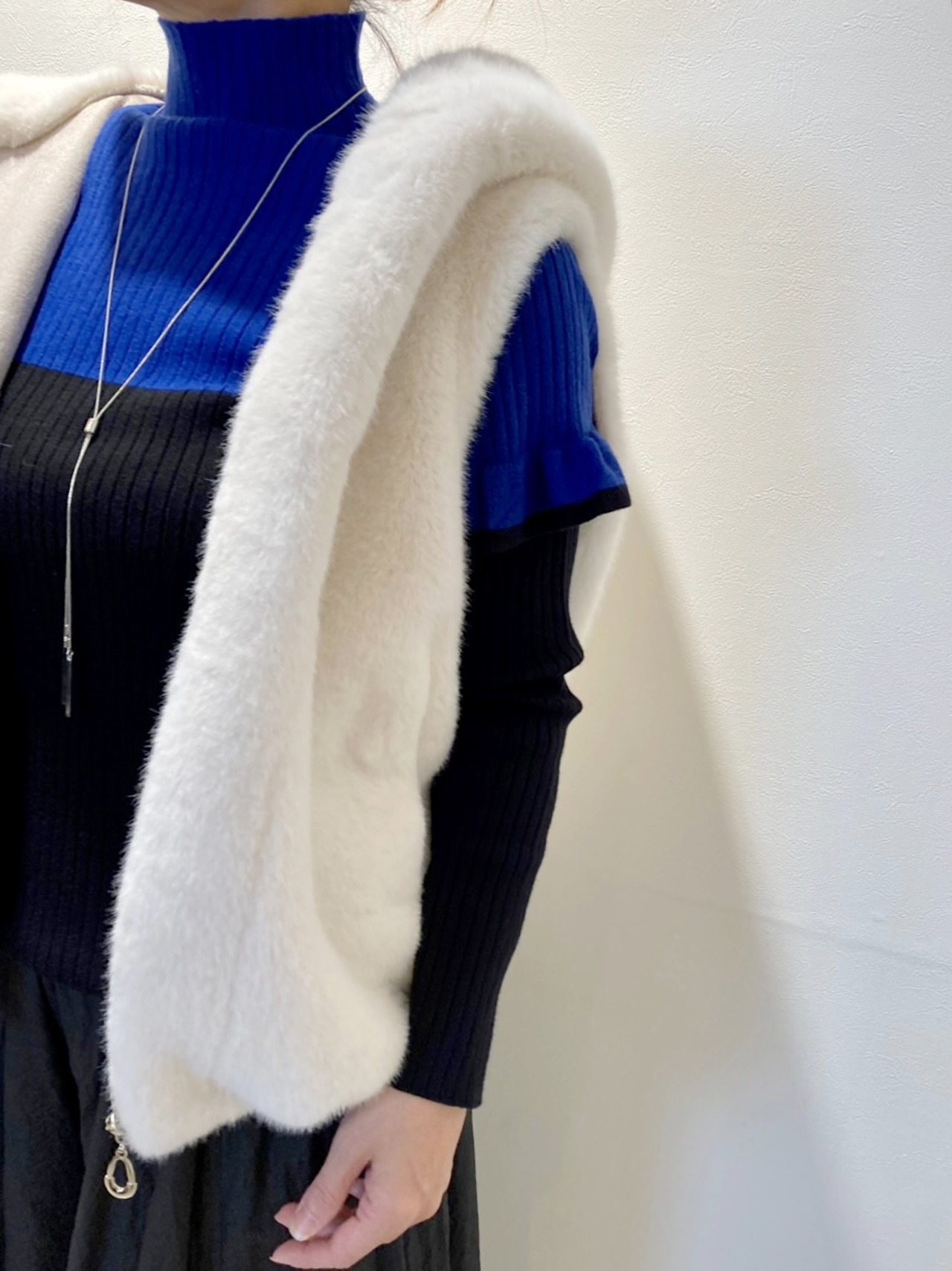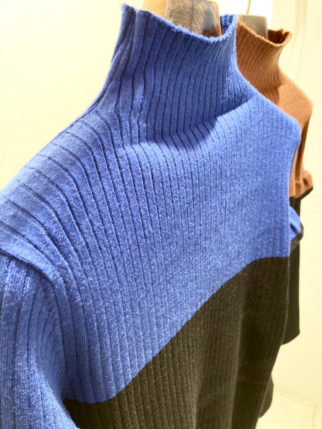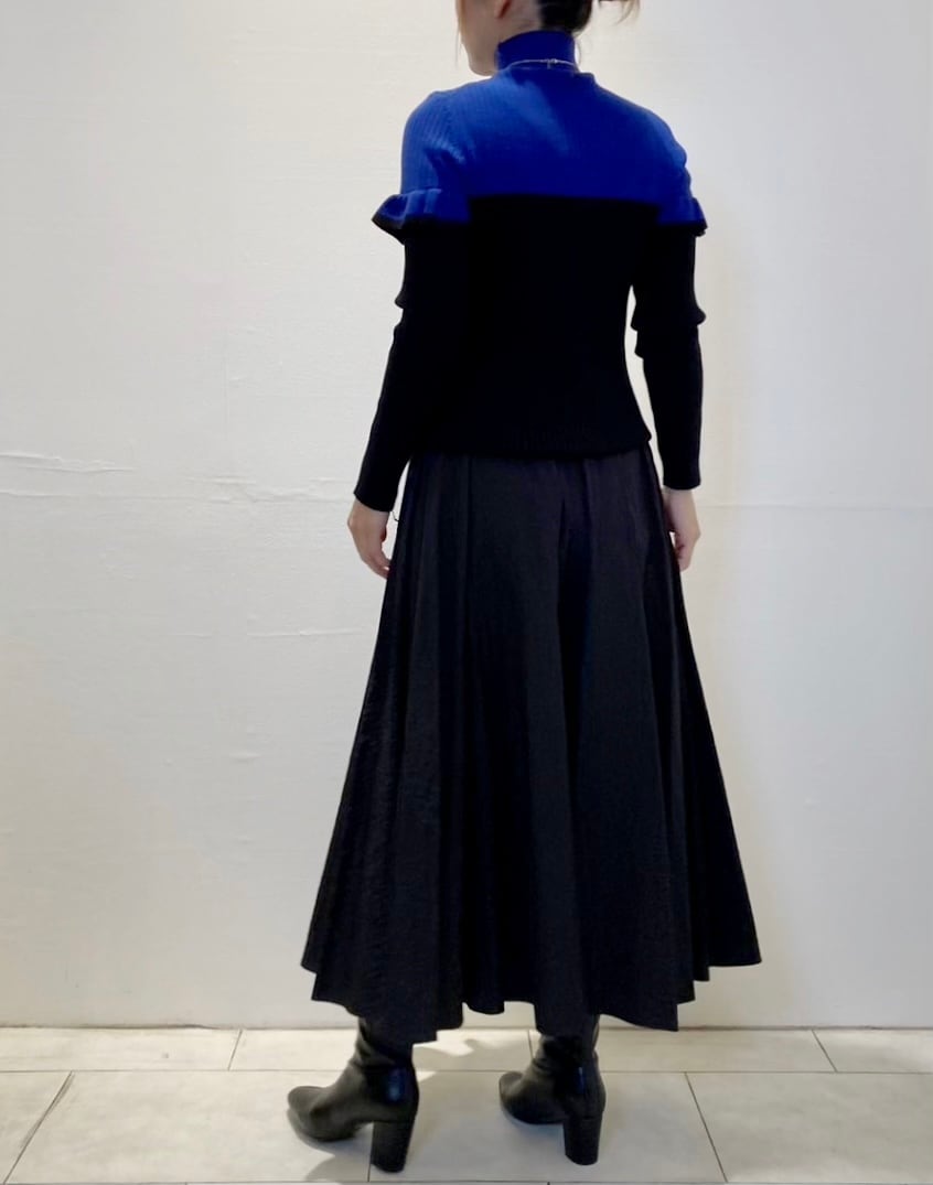大人可愛い袖フリルバイカラーリブニットトップスが新入荷!