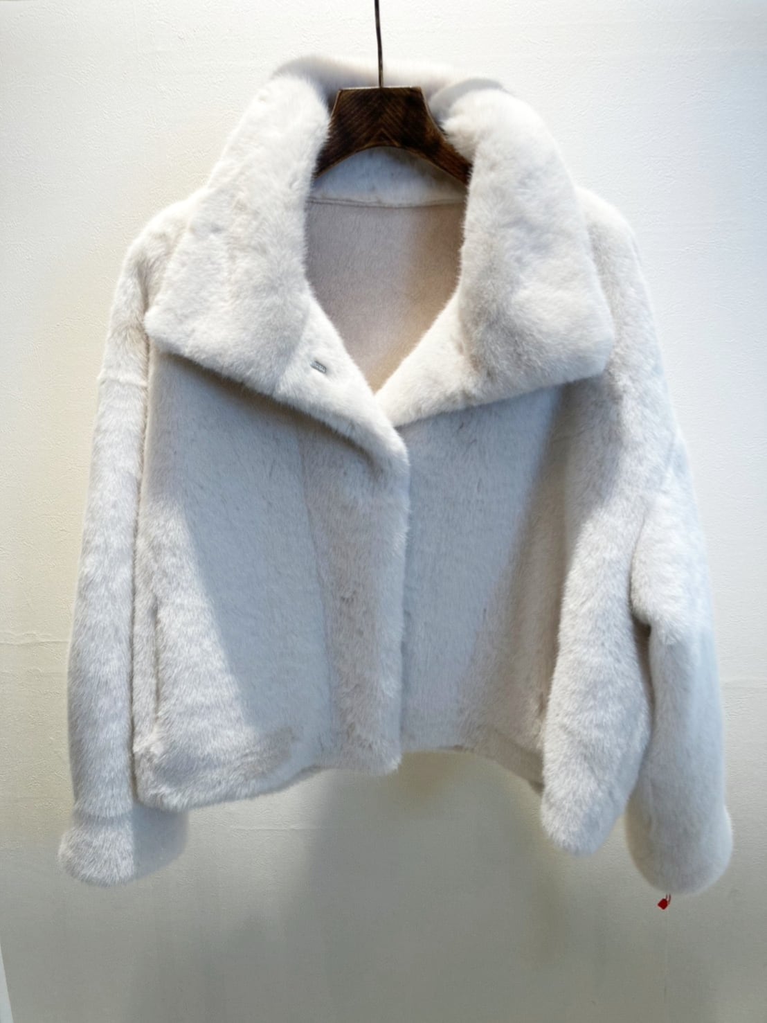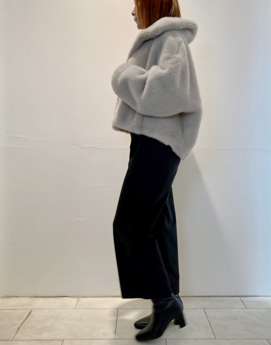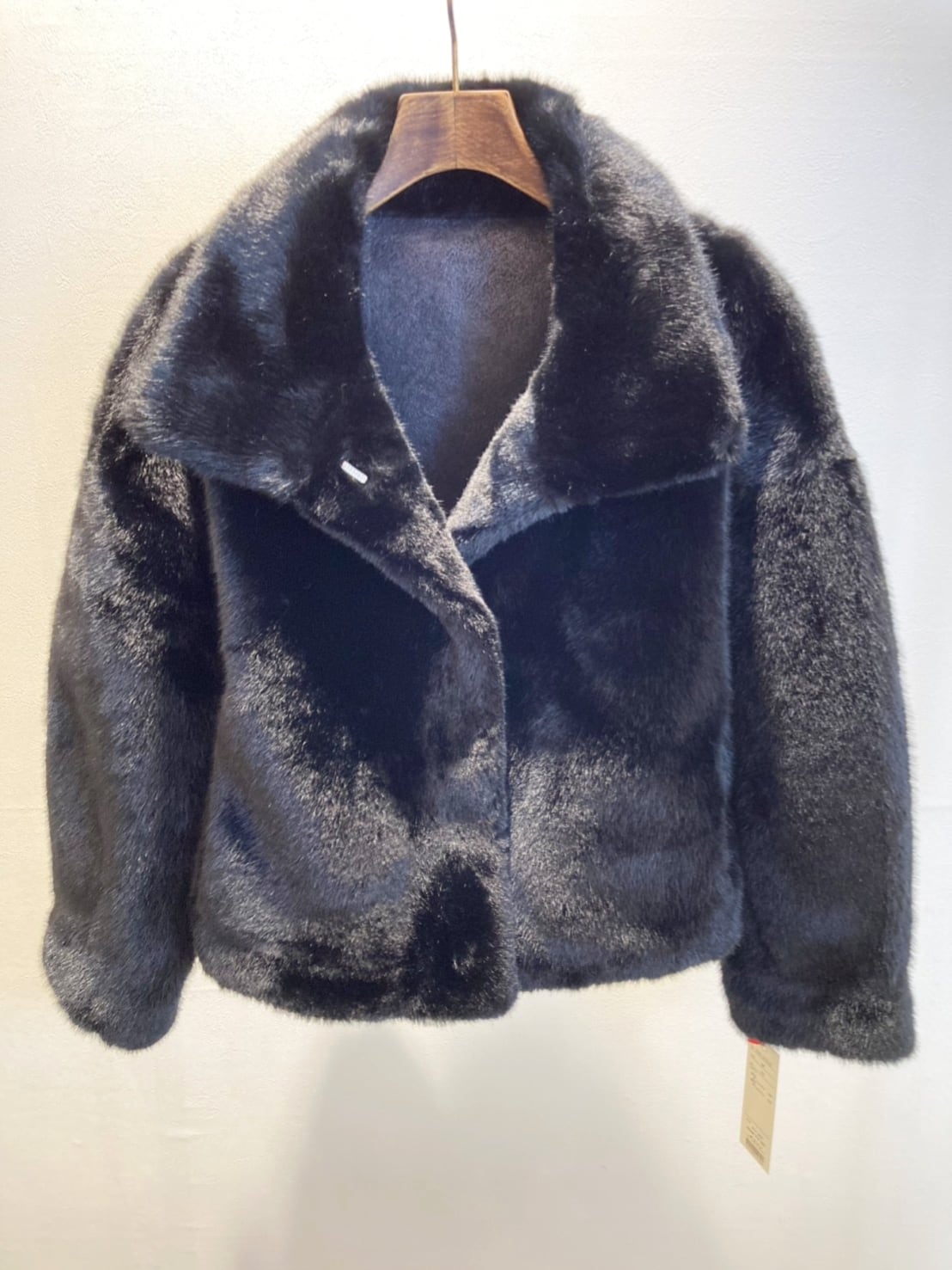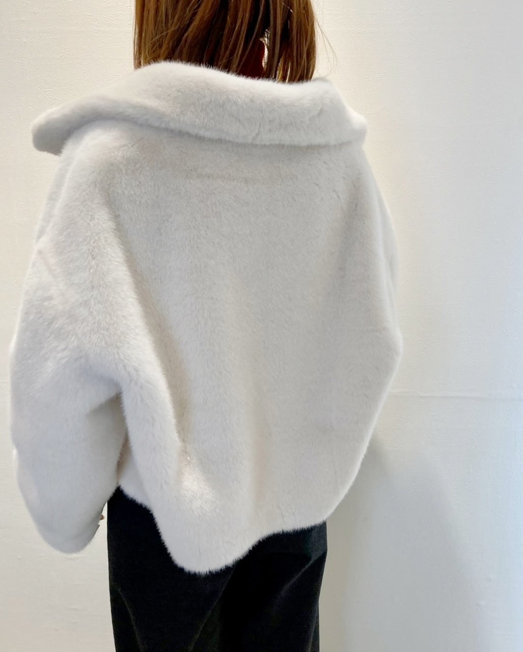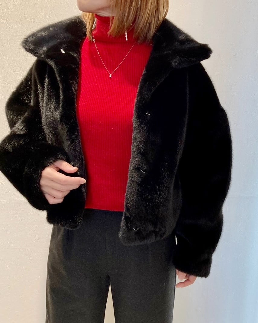 ホックがラインストーンになった大人可愛いオシャレファージャケットはこれからの羽織にピッタリ。