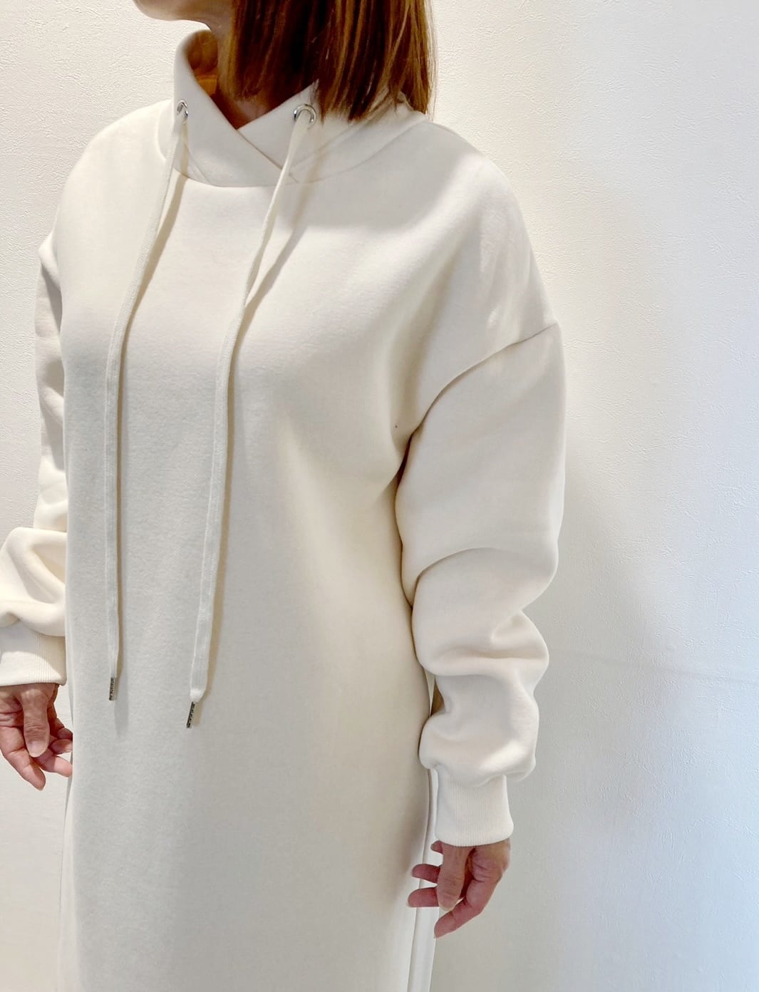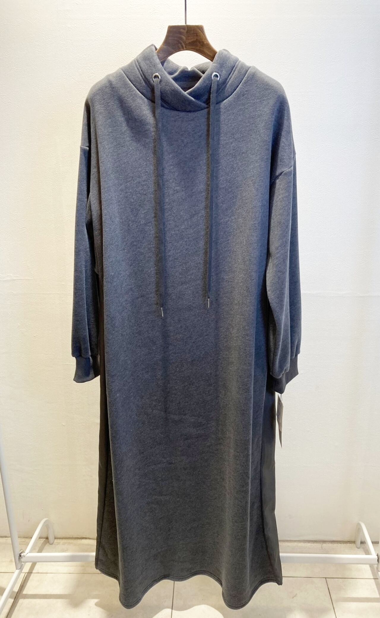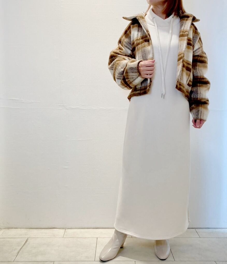 後ろが異素材プリーツ切替になった裏起毛ロングワンピースが新入荷!