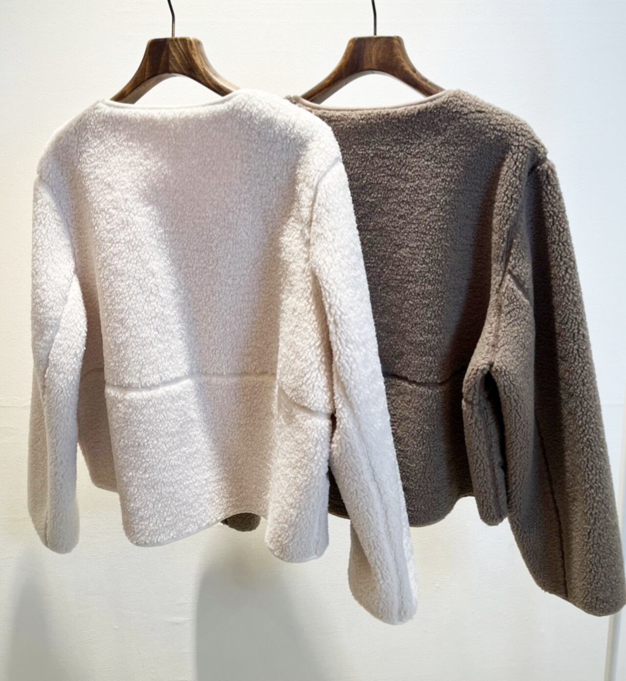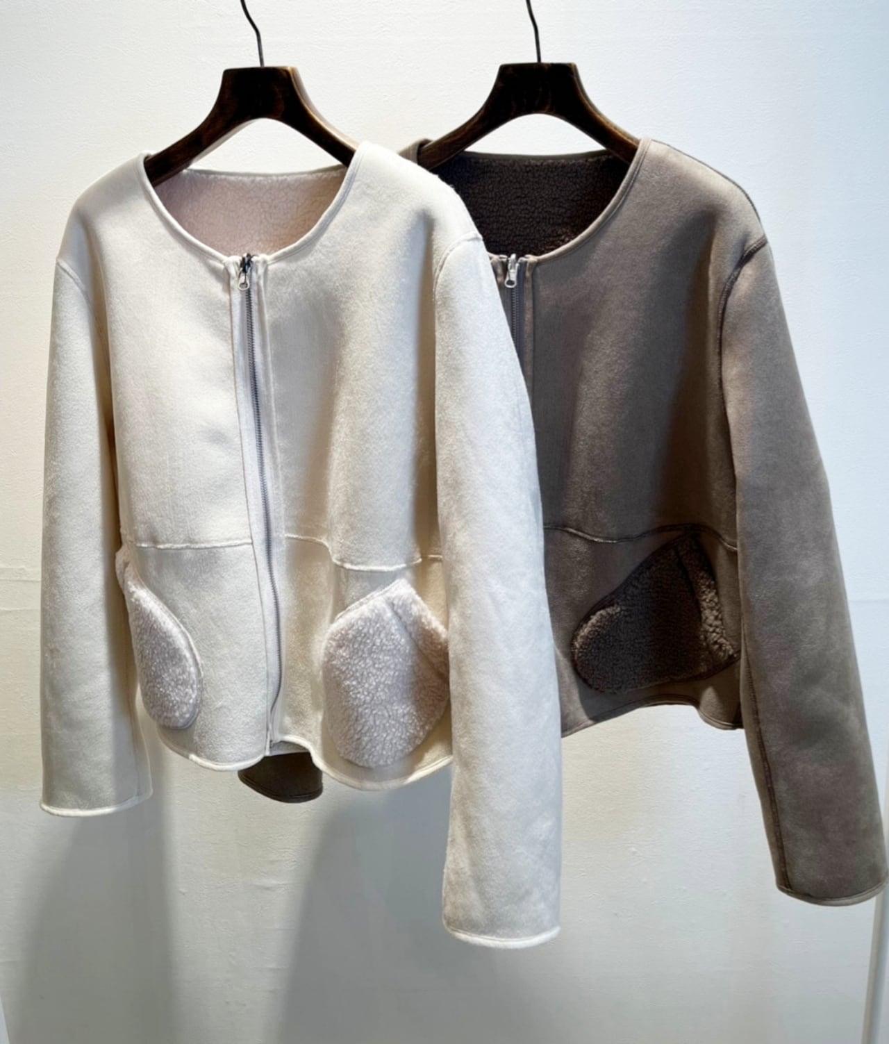 スカートやパンツワンピースなど色んなアイテムに羽織って頂けて気分でボアバージョン、フェイクスエードバージョンと楽しんで着て頂けます。