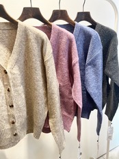 綺麗なカラーのニットに同系色の小さなスパンコールがあしらわれたキラキラニットカーディガンです。