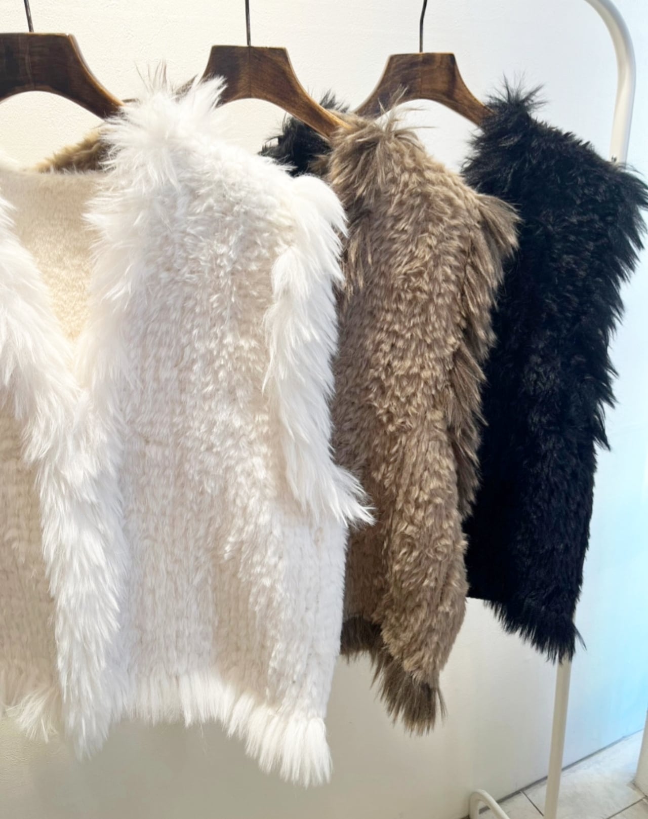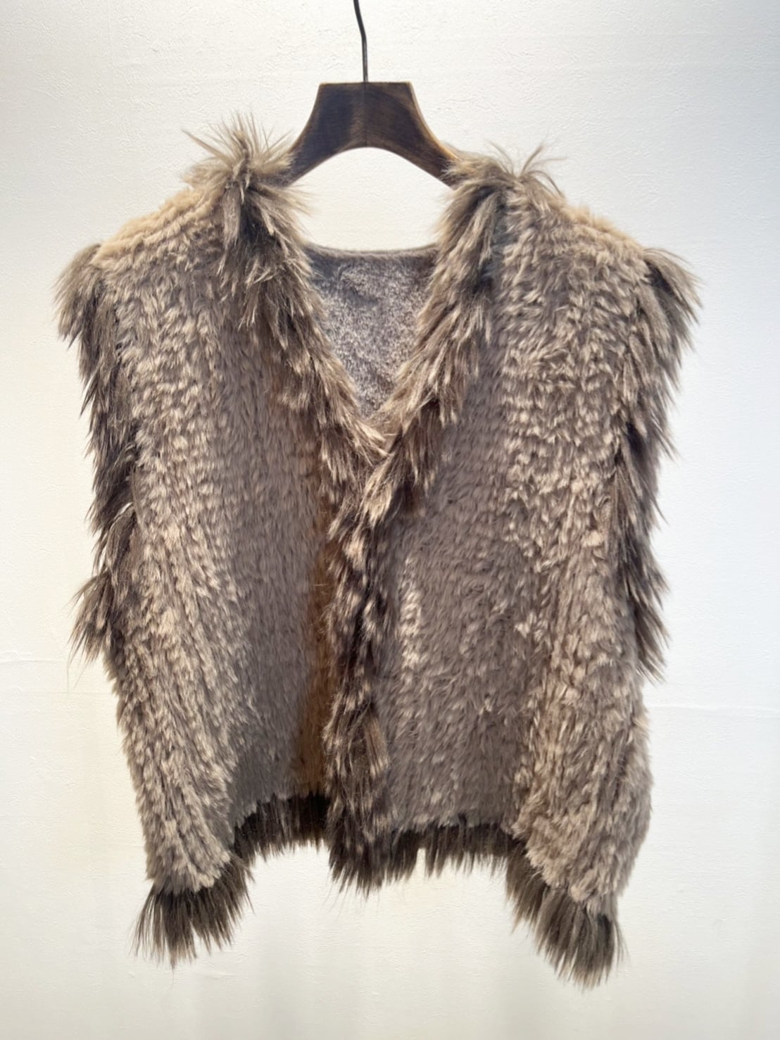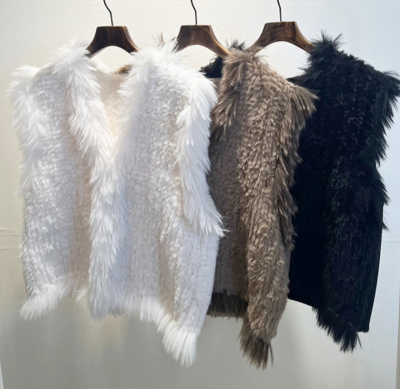 フロントファー、後ろがフェイクスエードの切替になった大人可愛いファーベストです。