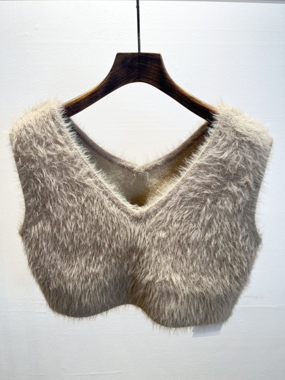 レイヤードスタイルにもおすすめなシャギーニットショートベストが新入荷!