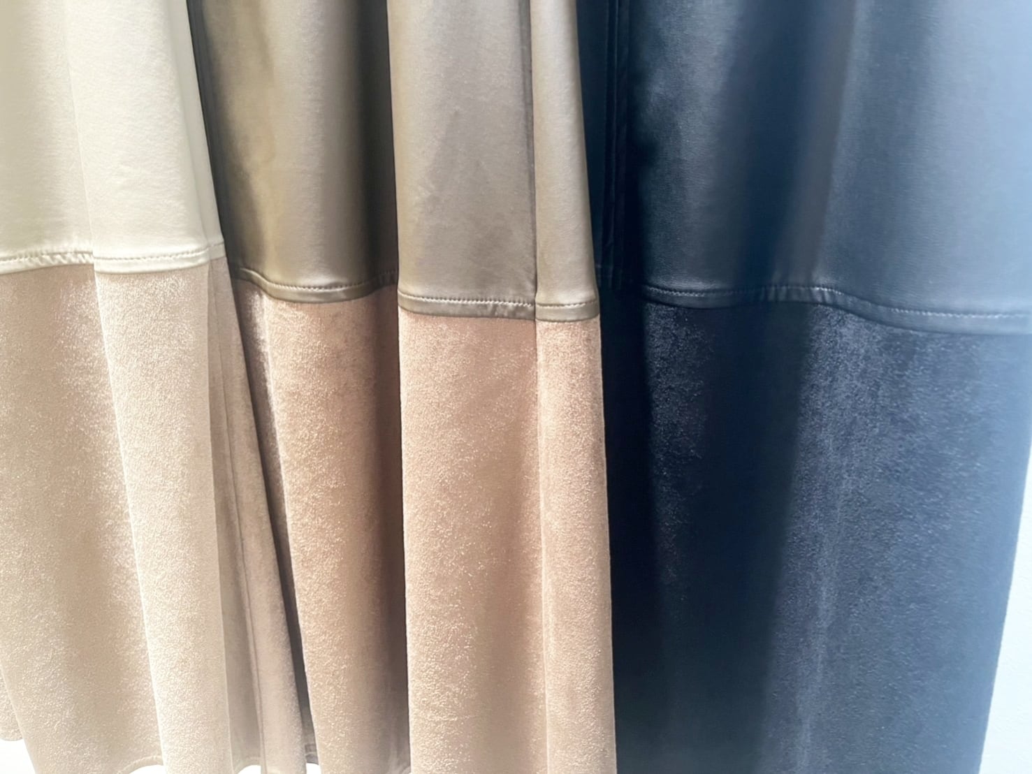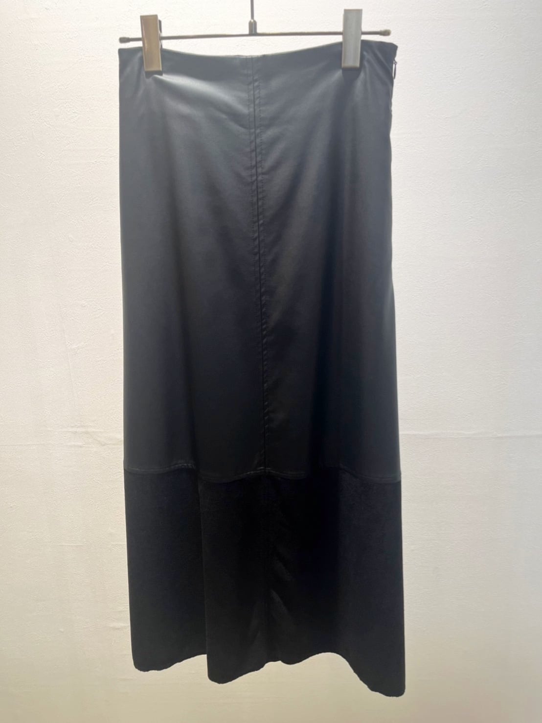 フェイクレザーとフェイクスエードのオシャレな切替スカート。