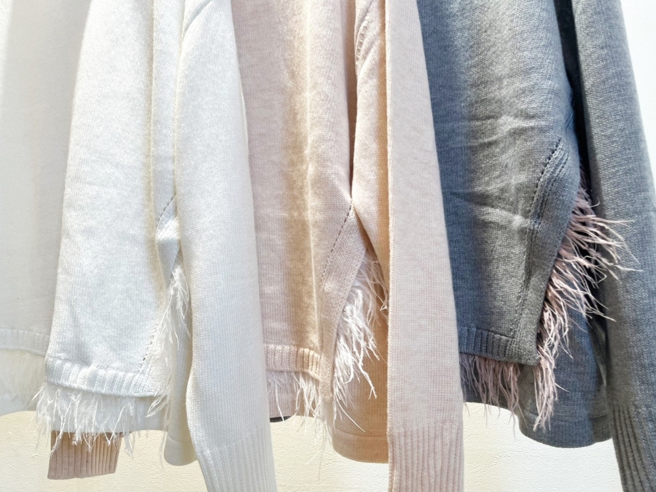 ふんわりフェザーフリンジがアクセントになったデザインニットトップスが新入荷!
