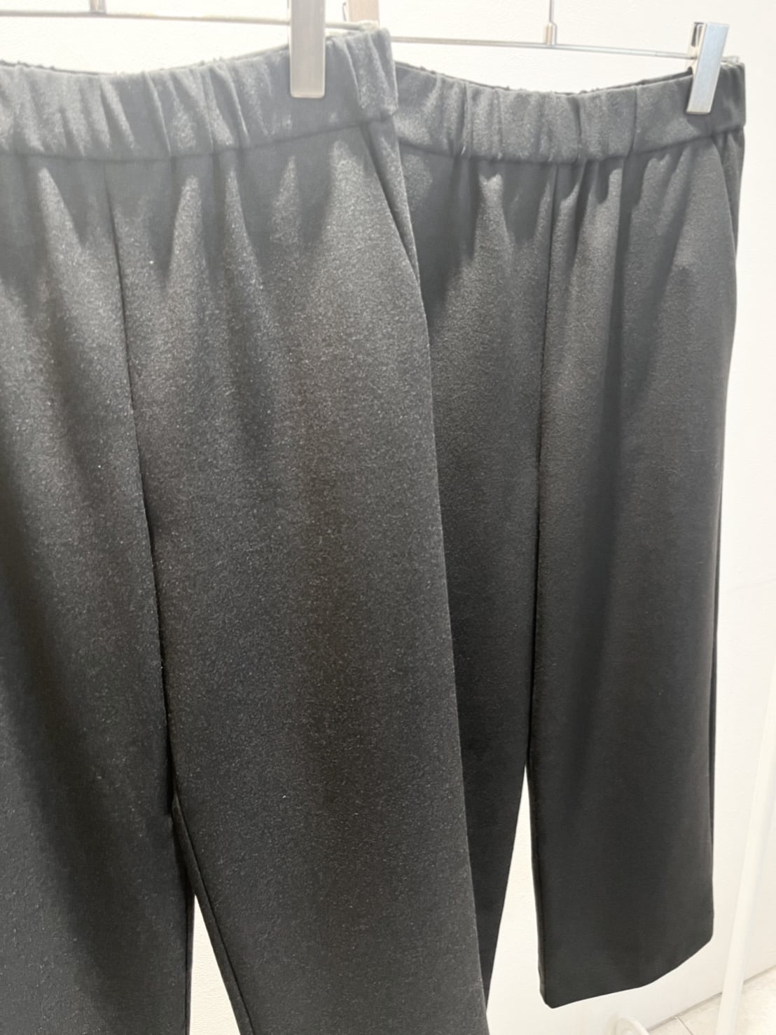 ほんのり暖かな肌あたりの綺麗目パンツ。