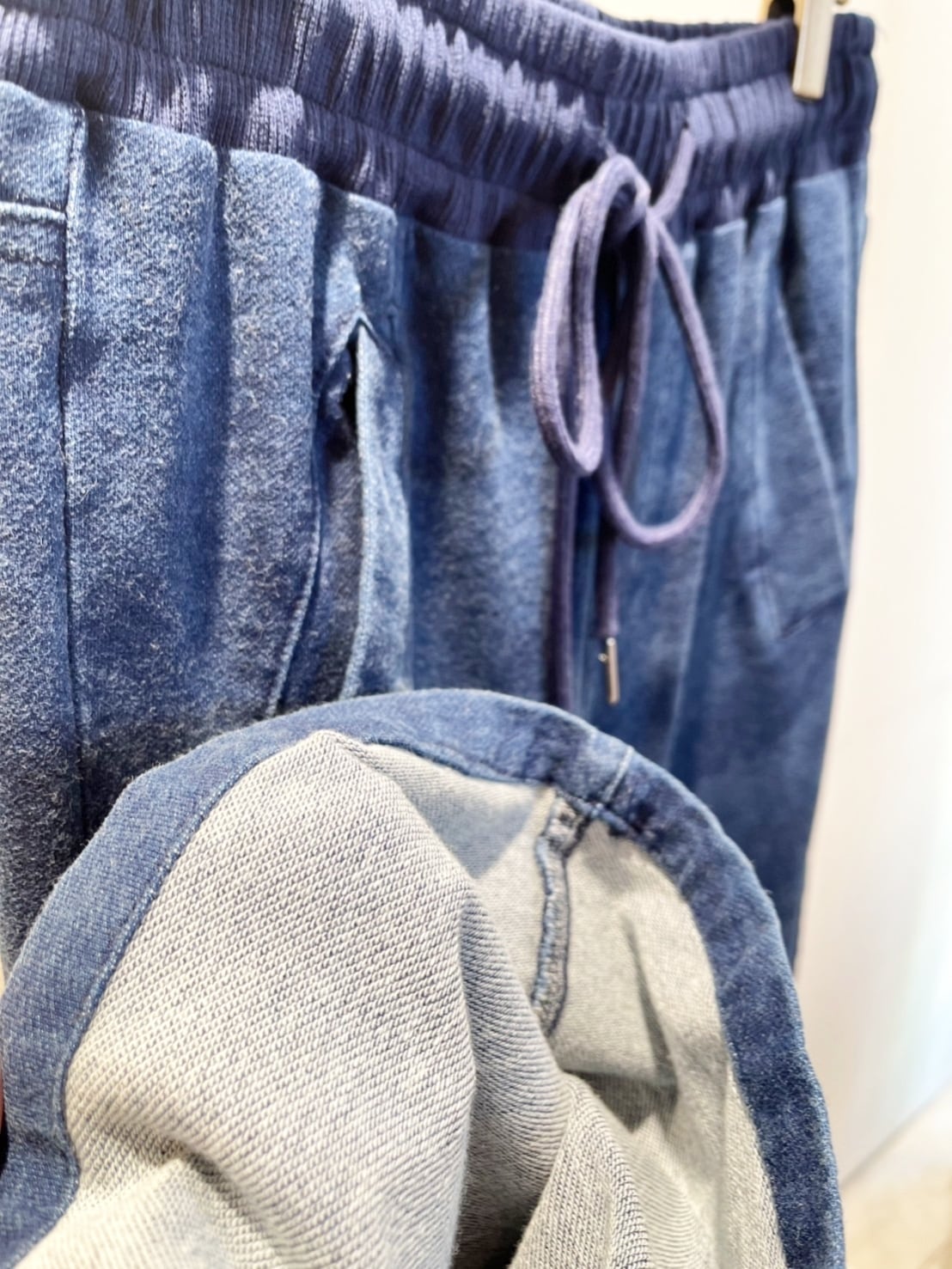 ウエストはリブゴムで紐で絞って頂けるタイプ、ストレッチの効いた動きやすく楽に履けるパンツです。