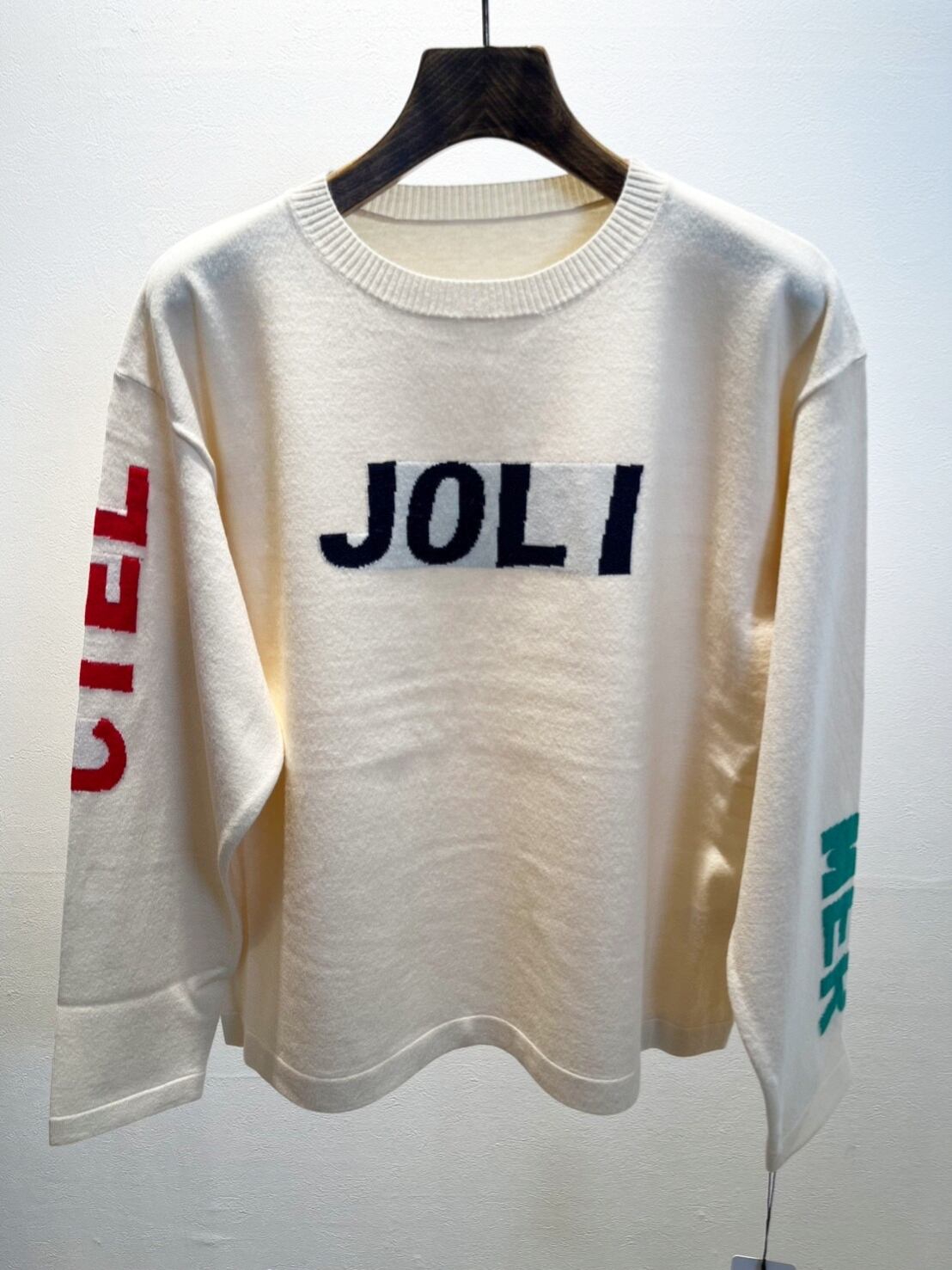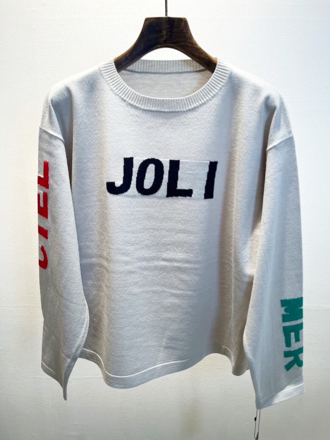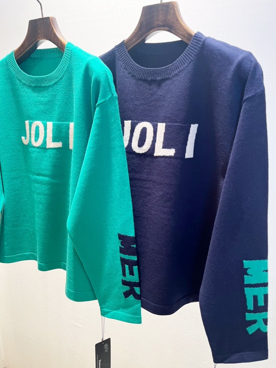 サラサラニットにカラーロゴ配色がアクセントになった1着です。