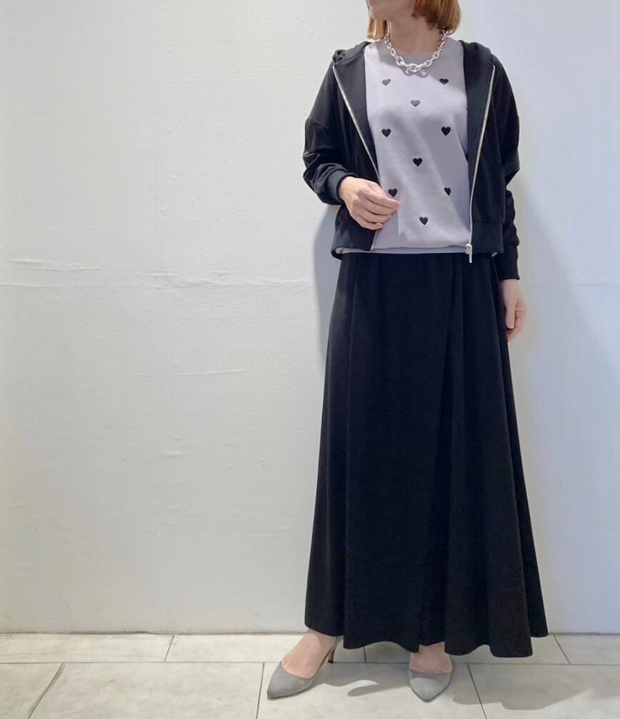 サラリとした生地感に小さめハート刺繍がほどこされた大人可愛い1着です。