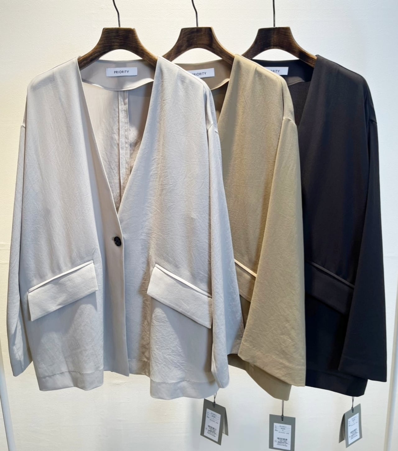 【NEW】PRIORITY ノーカラーとろみジャケット