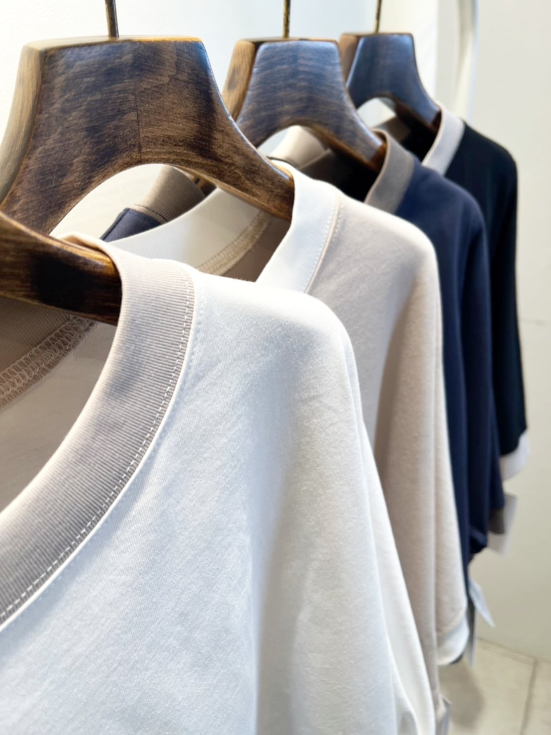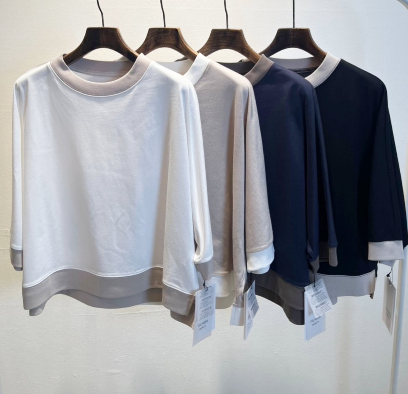 七分袖配色デザインカットトップスが新入荷!