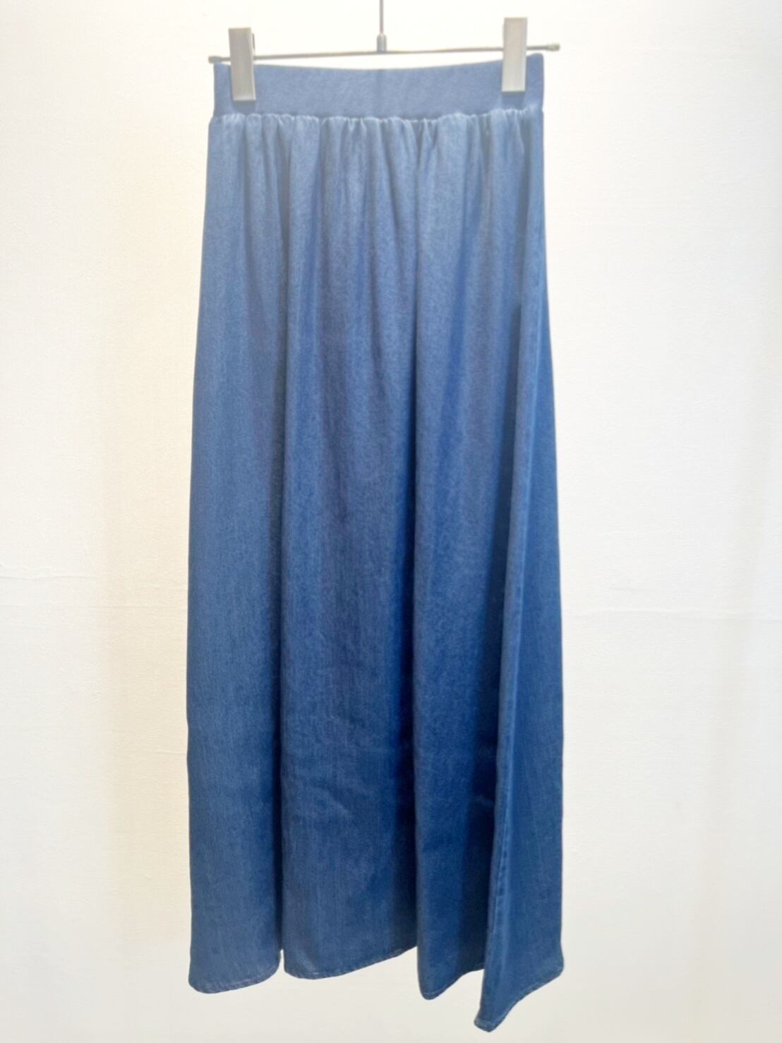 トロンと落ち感のある薄手デニムスカートはこれからの季節大活躍します。