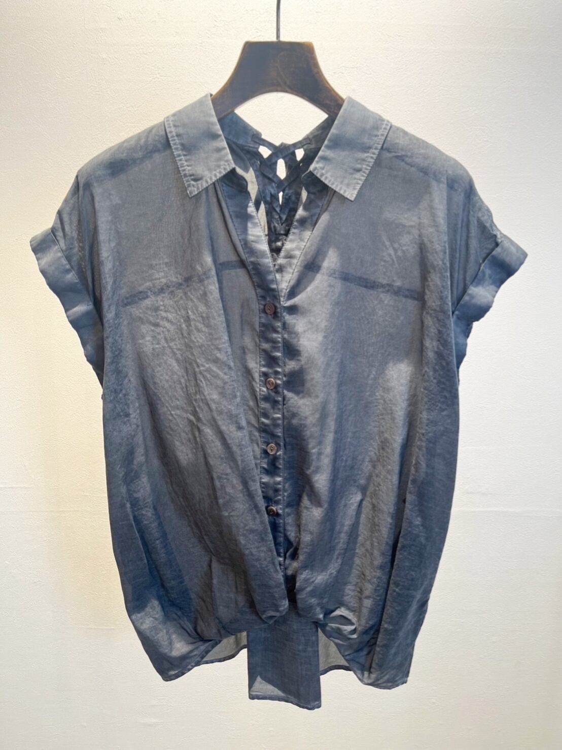 【NEW】musemieux バックレースアップシアーシャツ