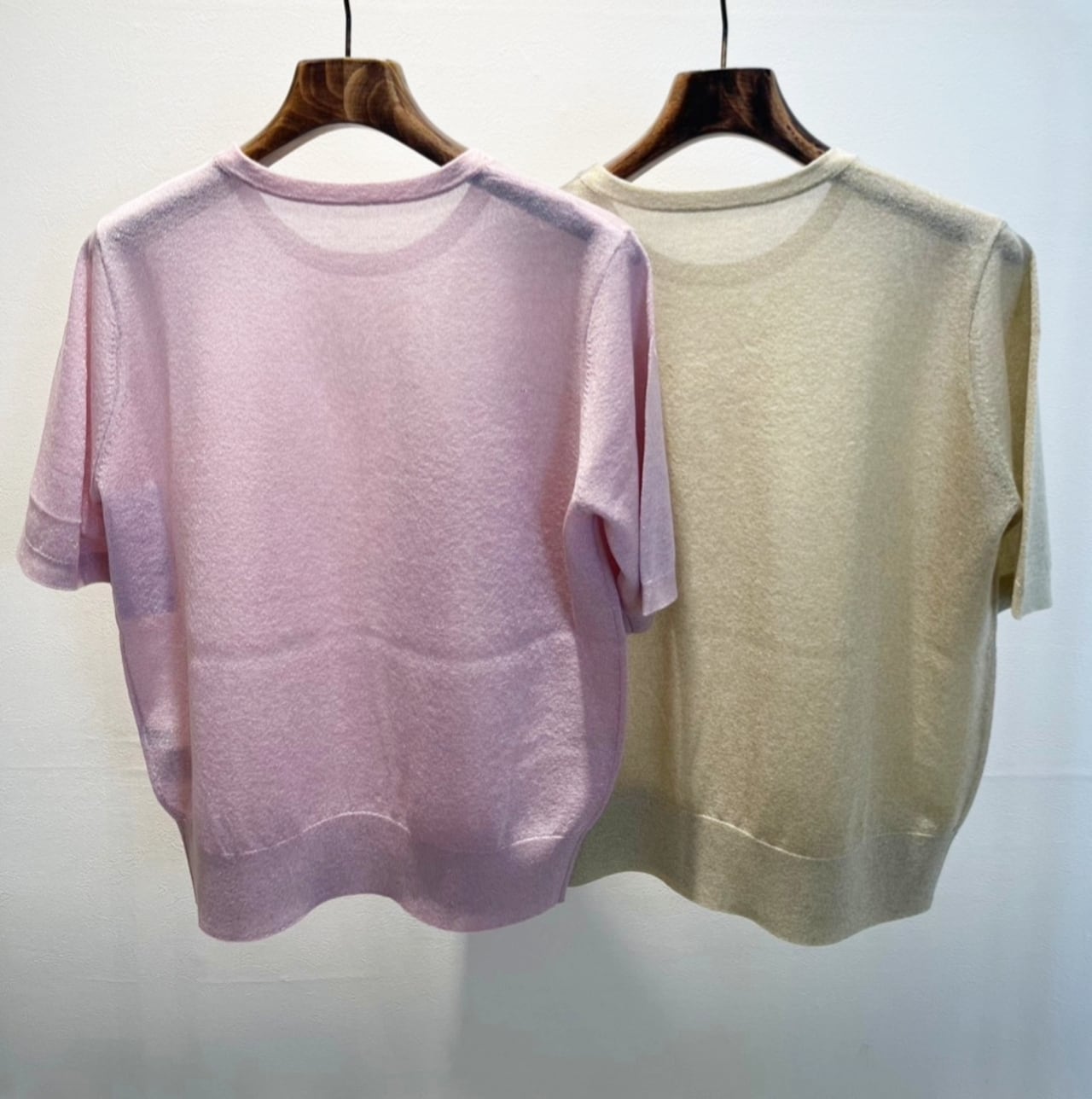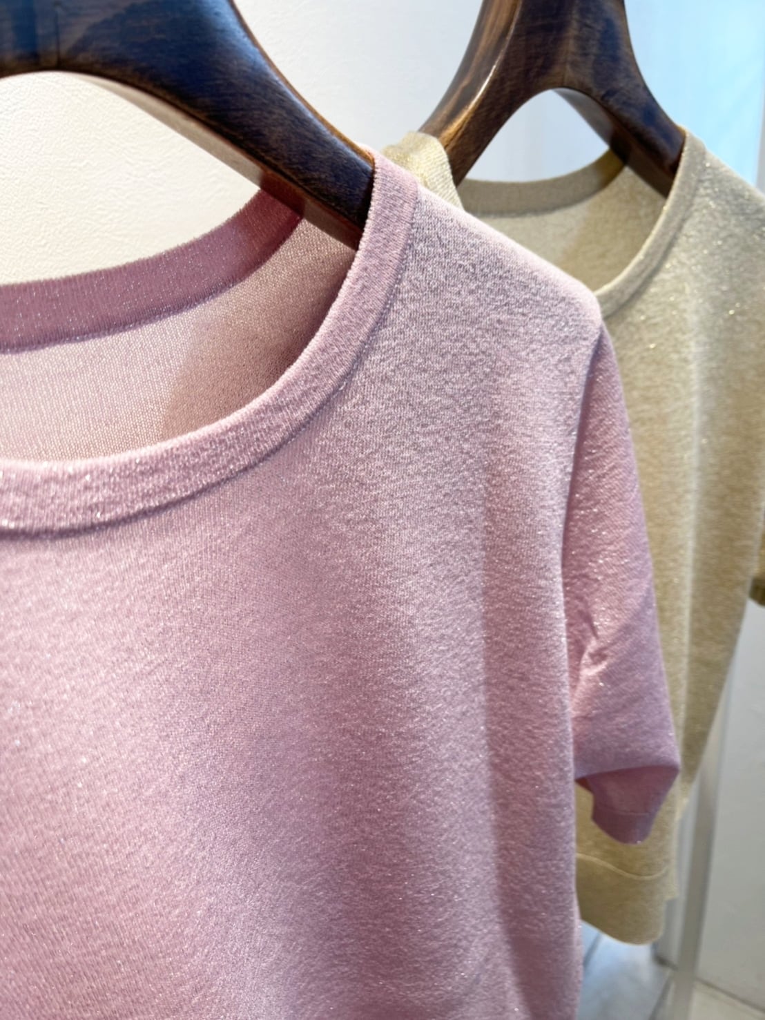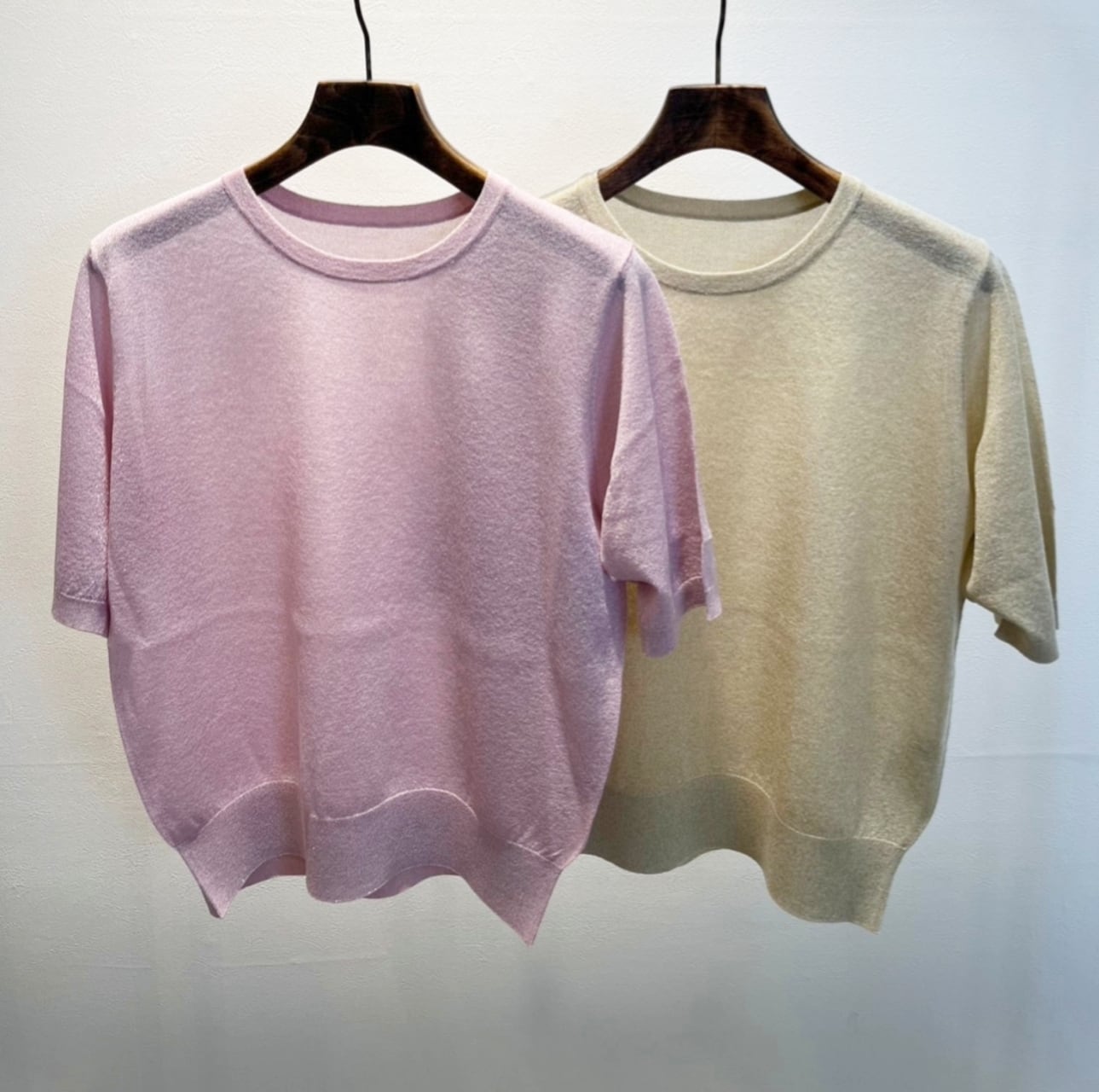 【NEW】Donnez-Moi 5部袖シアーラメニットトップス