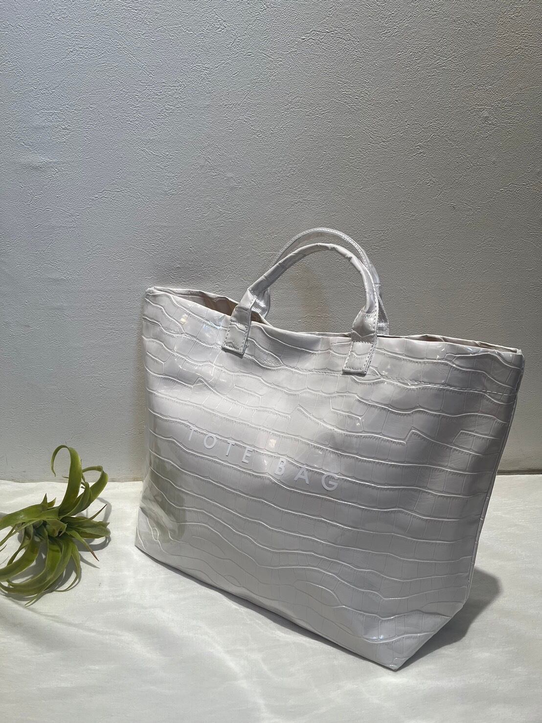 クロコダイル柄の型押しデザインがアクセントになった雨に濡れてもサッと拭くだけで安心バッグ!