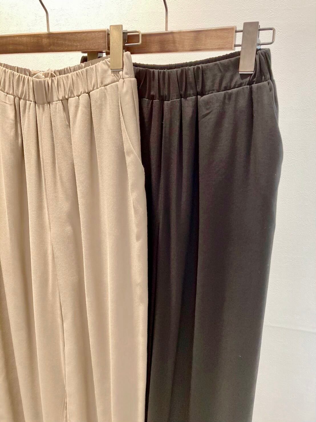 トロンと落ち感あるキレイなシルエットなのに動きやすく履き心地のいい普段使いからお出かけにも大活躍できるパンツです!