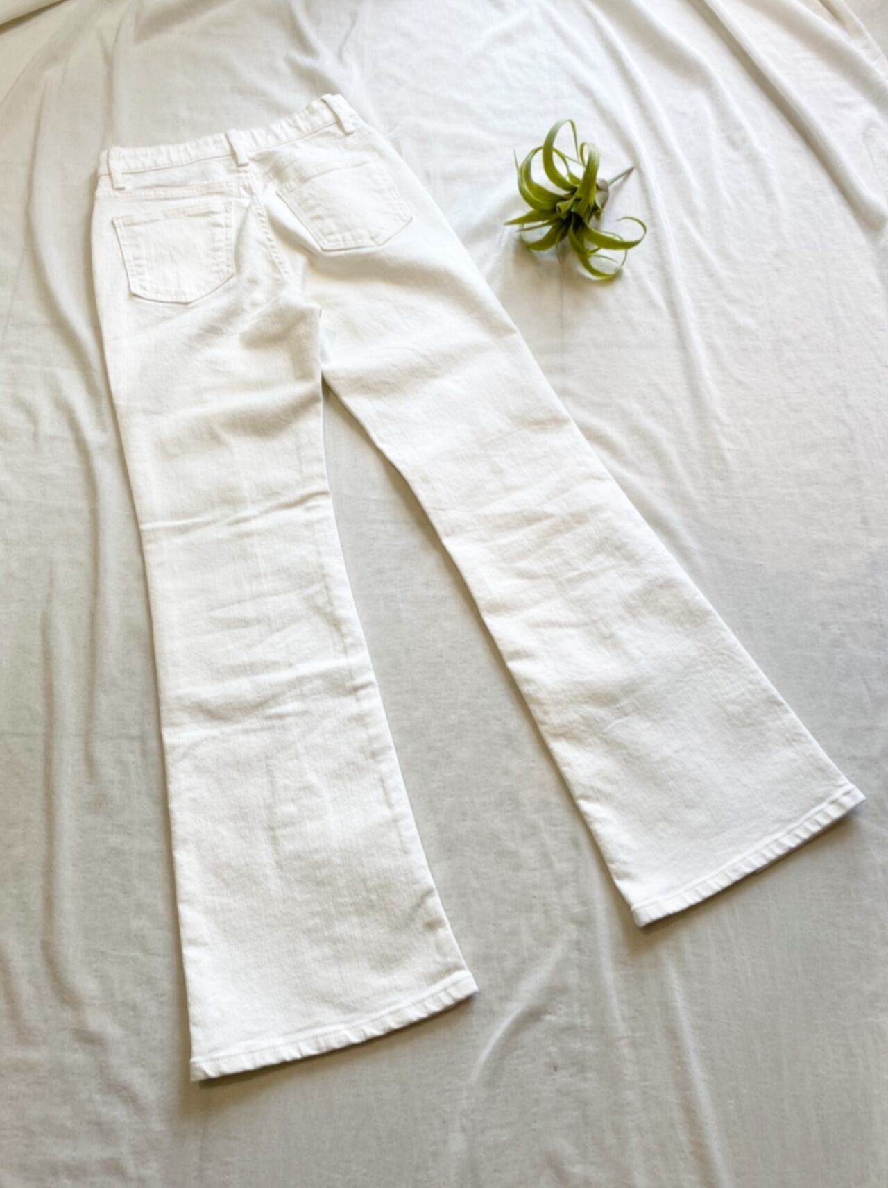フロントの裾スリットが脚長効果を発揮してくれる美シルエットデニムはウエストもゴムでラクチンです。ストレッチも効いているので履き心地もバツグンです。