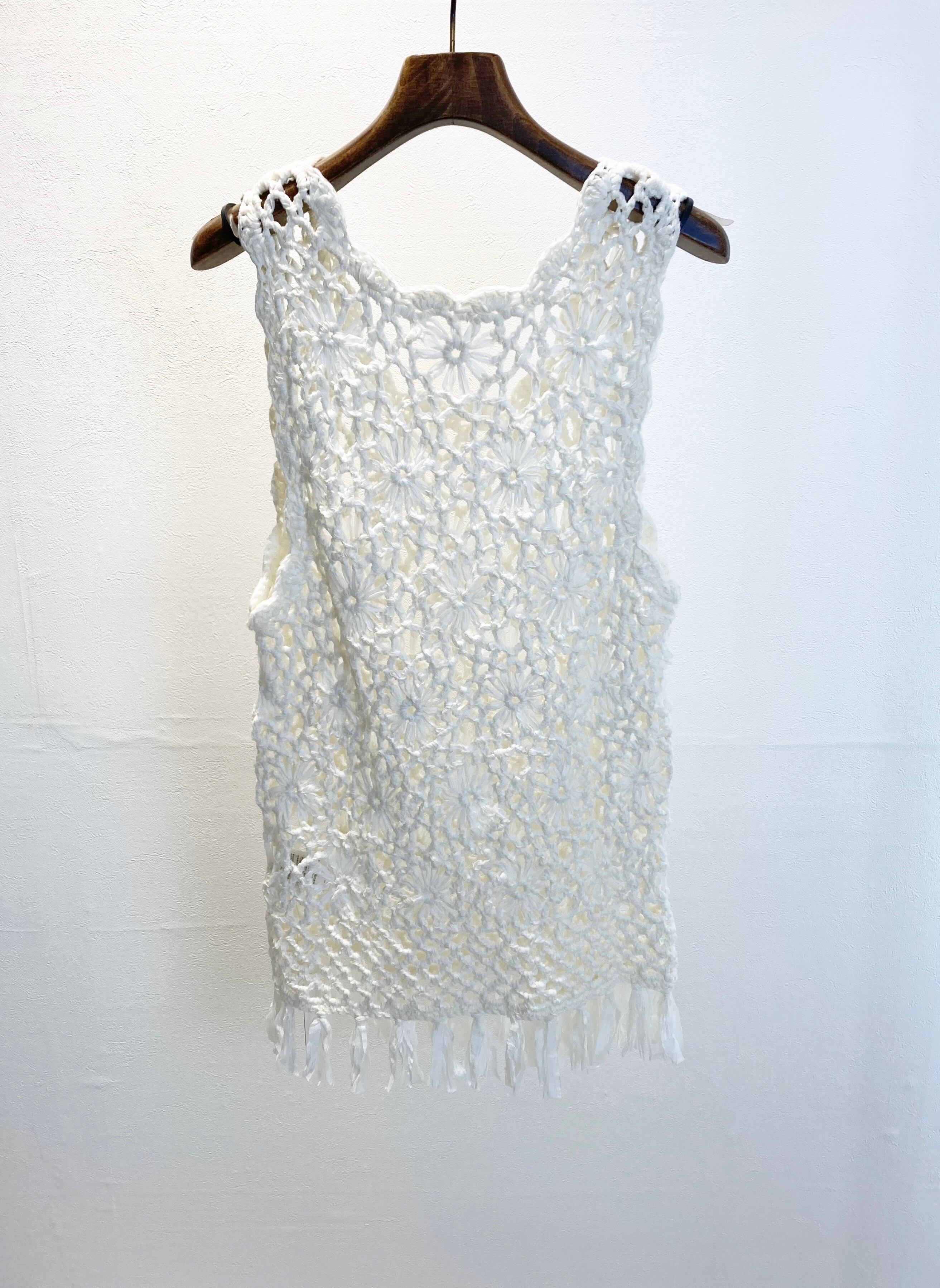 ノースリ透かし編みデザイントップス
