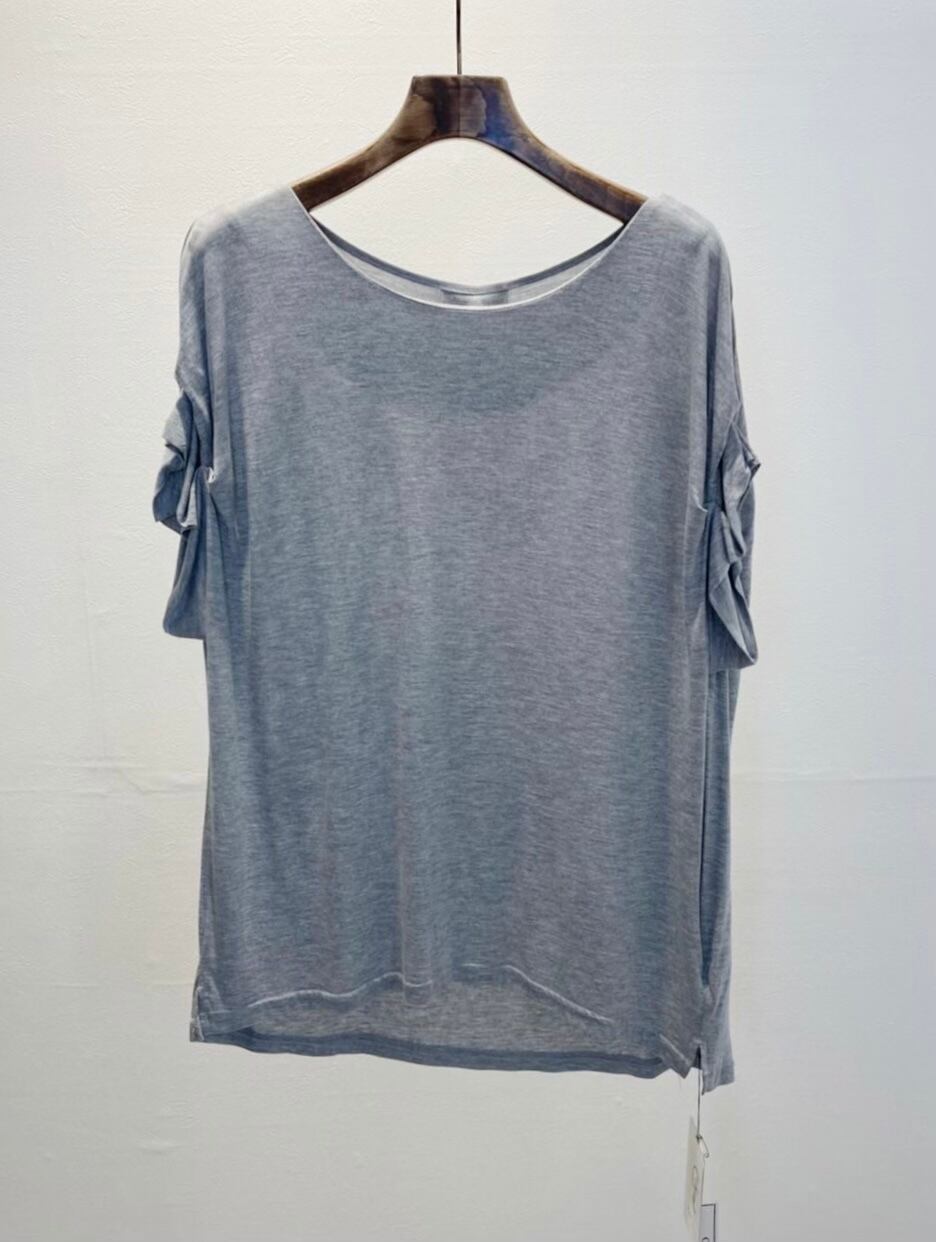 レーヨン100%のお袖プリーツデザインTシャツ。