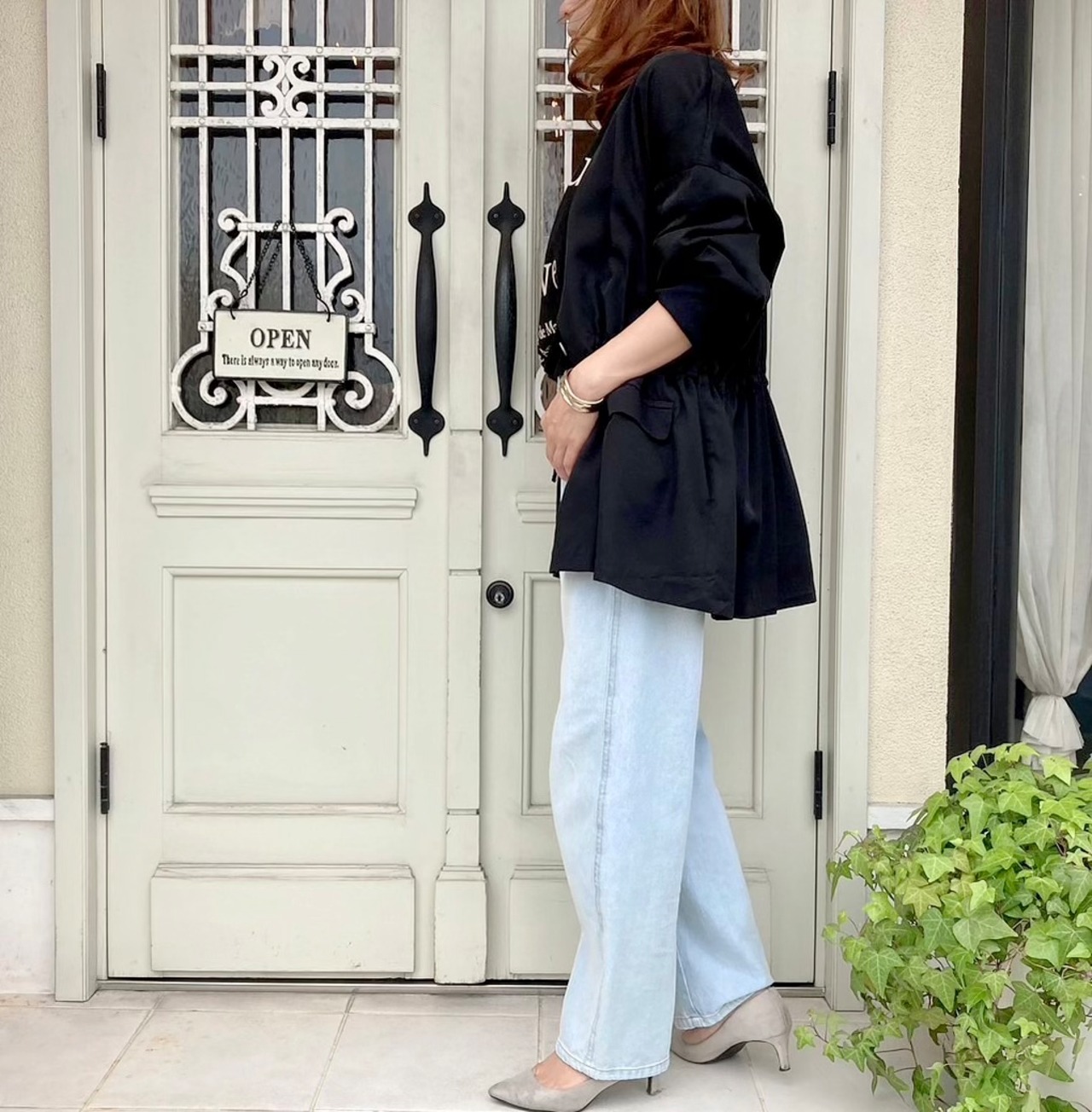 ドロスト仕様でウエストマークして女性らしいスタイルにアレンジしたりそのままオーバーサイズでカジュアルに着こなしたりとお好みで着用して頂けます。