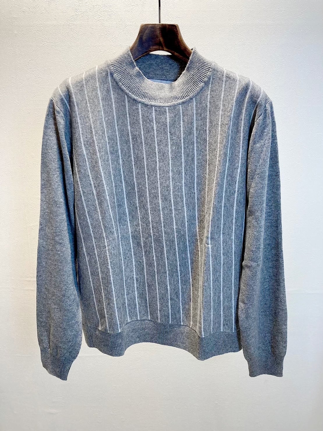 ダボっとしすぎず、ピタッとしすぎない程よいシルエットでジャケットやコートのインナーにも、まだ肌寒いに春先1枚でも暖かく着て頂ける1着です。