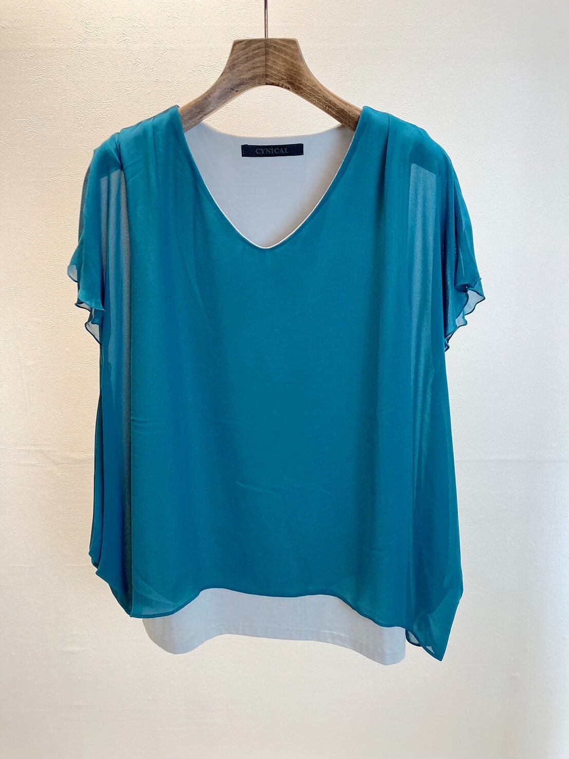 今季マストなシアー素材にカット素材がレイヤードされた1枚でサラリと涼しく着れてデザイン性もある1着です。