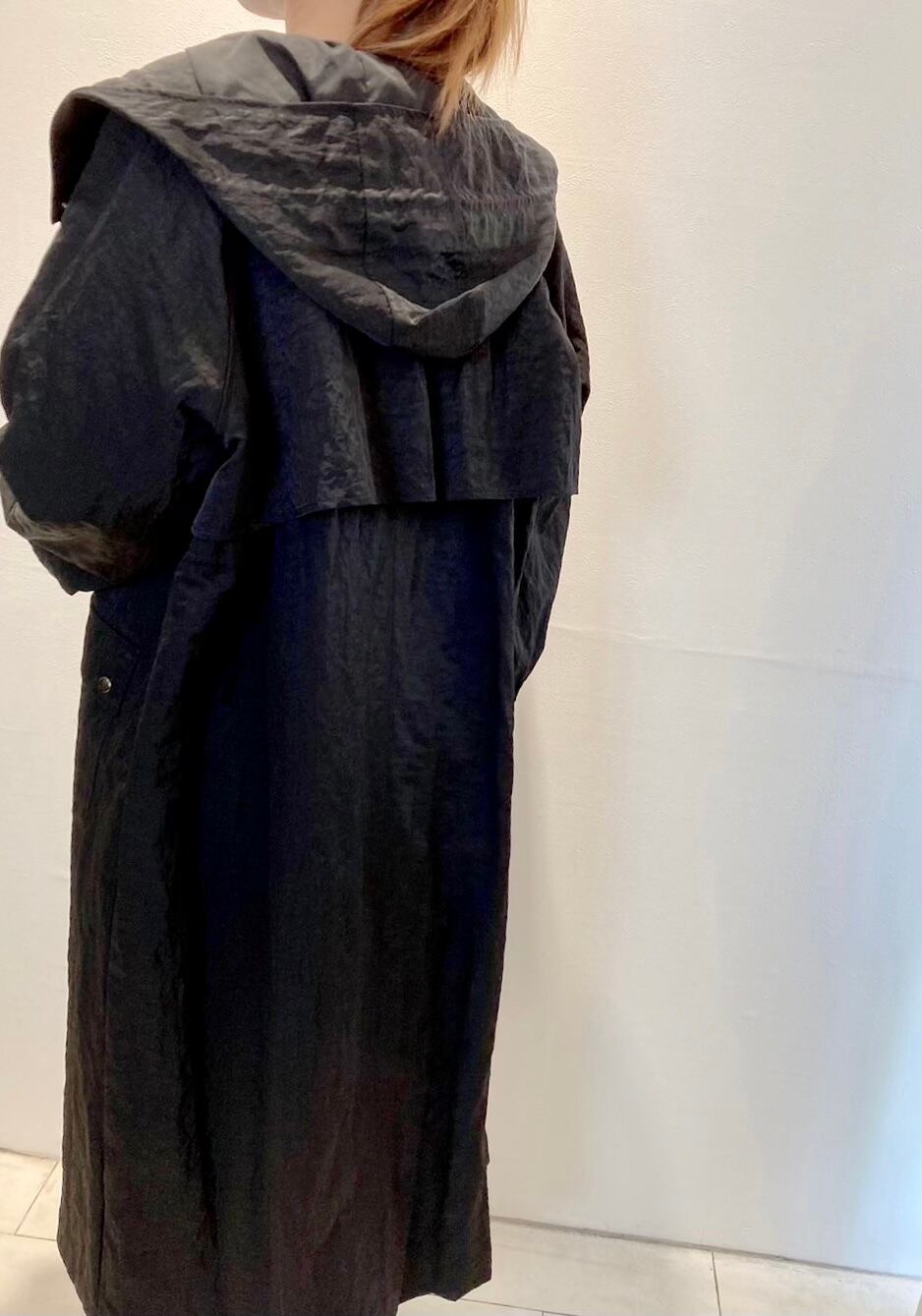 薄手ながら裏地も付いて風の通しにくい素材でオーバーサイズなデザインなのでこれからのニットトップスなどの上にも羽織って頂ける万能コート。